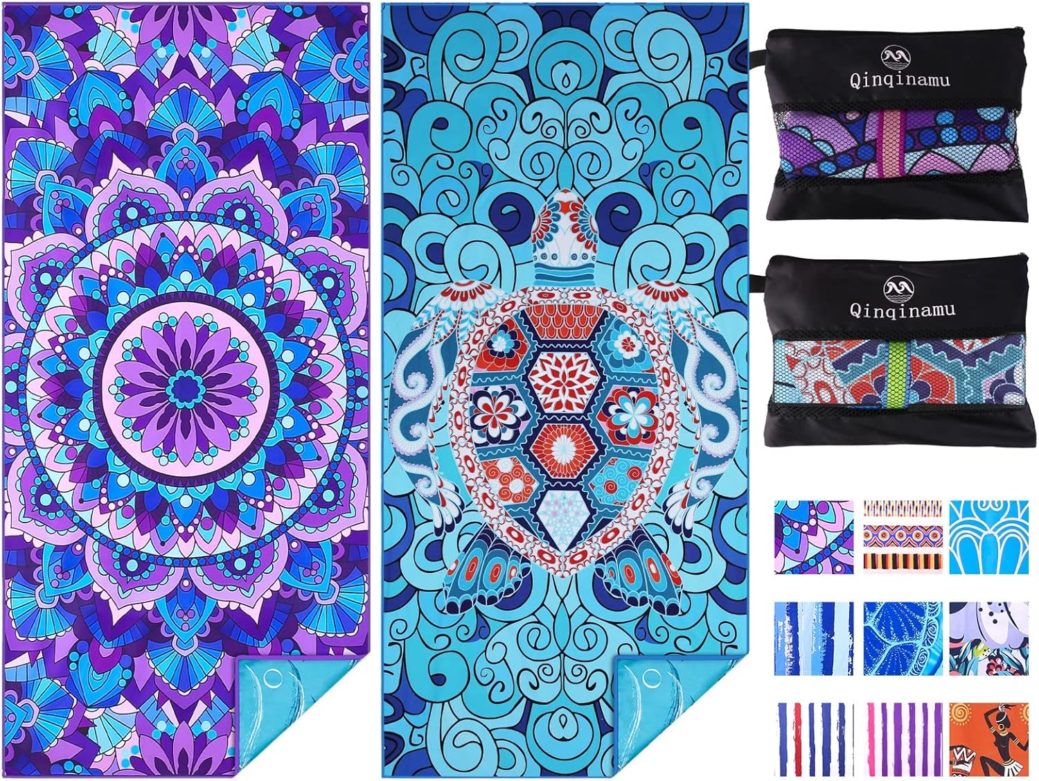 - ABSORBENT AND LIGHTWEIGHT : Microfiber beach towels contain millions of individual fibers that absorb up to 5 times their own weight. Save yourself the embarrassment and cold after bathing or swimming in the pool or beach. You can rest or wrap your body on it, or dry easily from head to toe. We feature compact fabric that you can easily fold to the perfect size to maximize luggage space and pack other items for easy portability