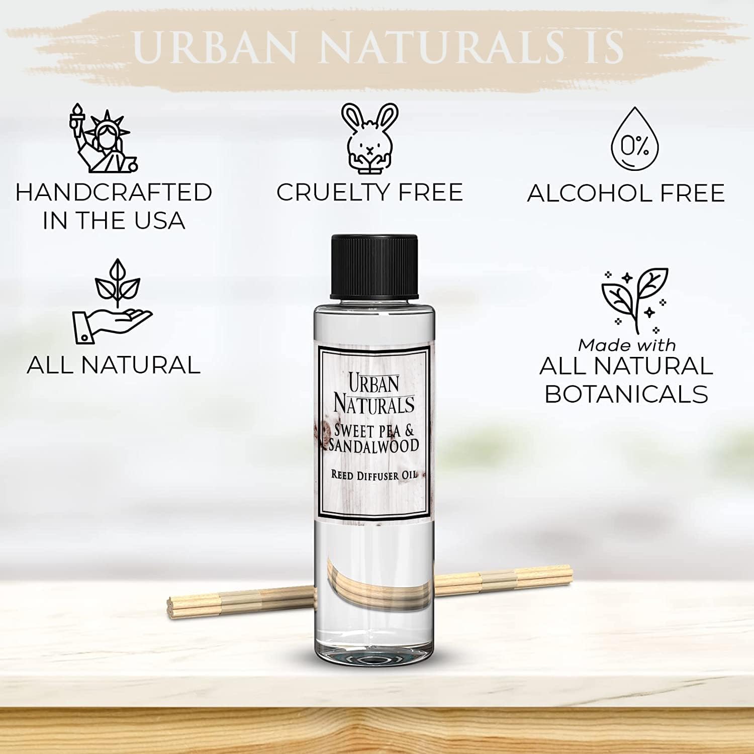 Urban Naturals Reed Diffuser Oil Refill, Sweet Pea & Sandalwood Diffuser Oils with Jasmine, Berries, Sweet Pea, 4 oz + Free Reed Sticks, Made in The USA