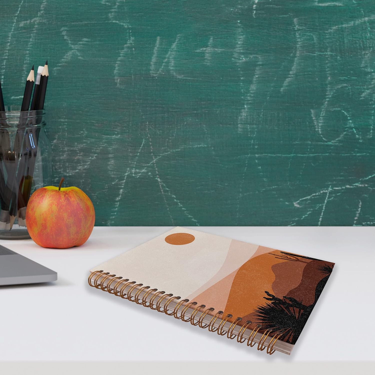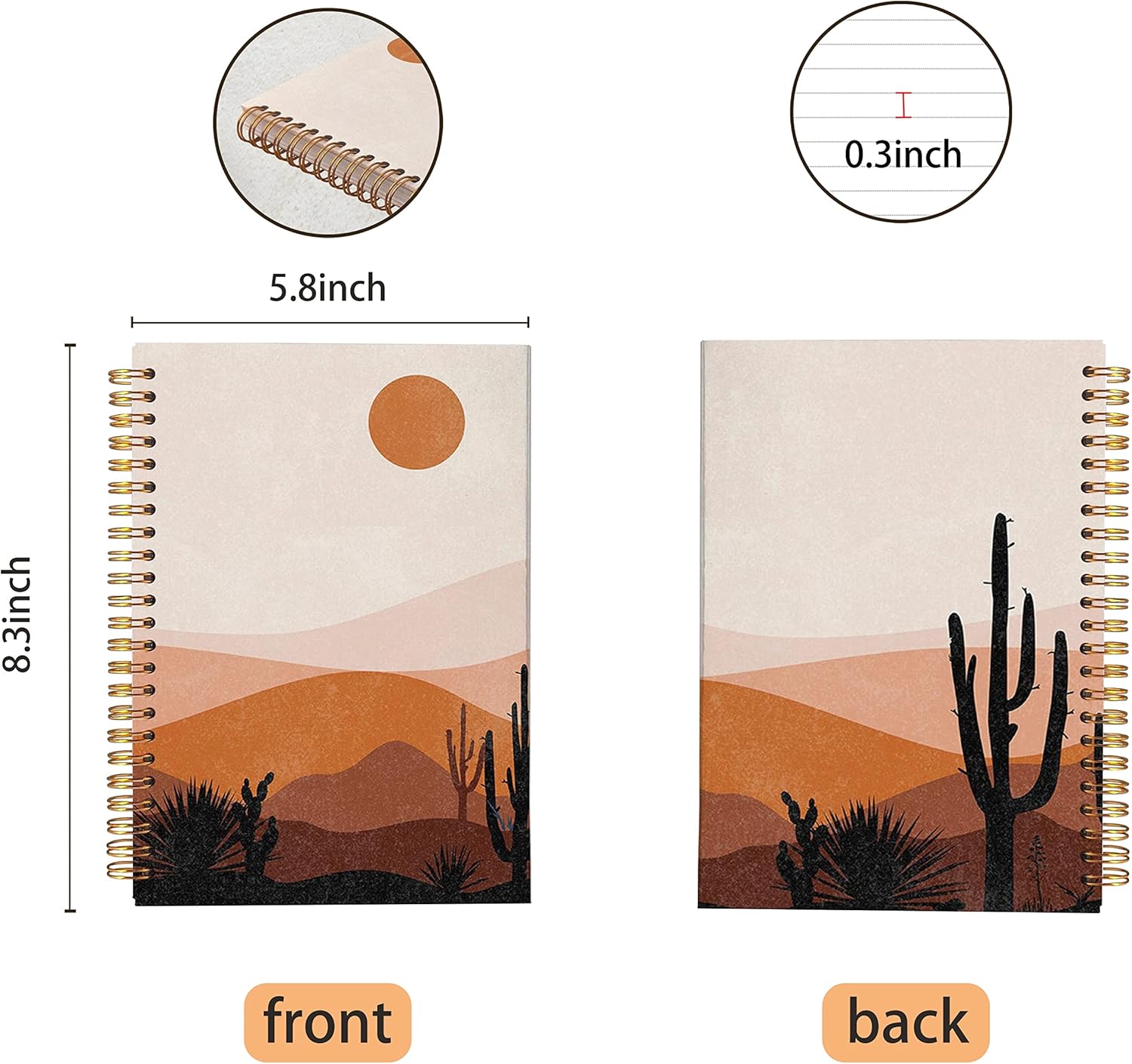 VNWEK Abstract Boho Desert Sun Cactus Landscape Spiral Notebook Journal 5.5×8.3 Inch,Boho Mid-Century Modern Art Lined Hardcover Spiral Notebook for Work Notes Journaling, Gifts for Women Girls