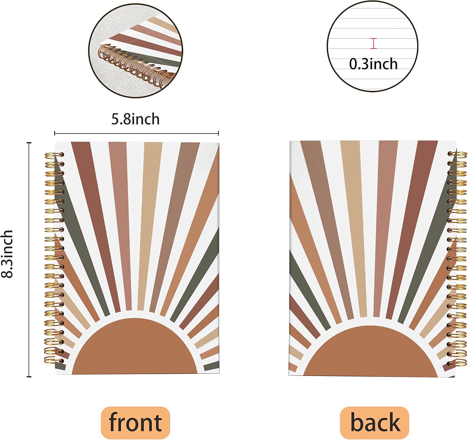 VNWEK Boho Sun Sunrise Sunset Colorful Sunshine Spiral Notebook Journal 5.5×8.3 Inch,Boho Mid-Century Modern Art Lined Hardcover Spiral Notebook for Work Notes Journaling,Boho Gifts for Women Girls