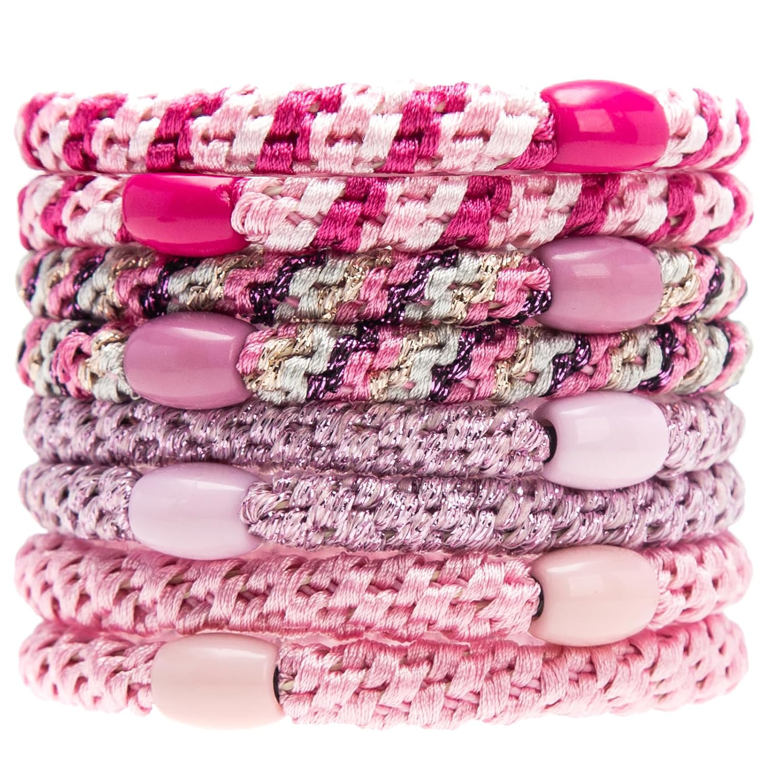 AXEN 8PCS Elastic Hair Tie for Women Girls, Cotton Bands Soft Woven Ponytail Holders for Thick Hair and Curly Hair, Pink Series