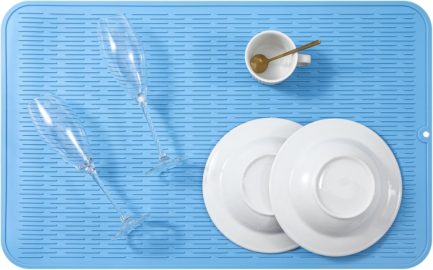 Silicone Dish Drying Mat for Multiple Usage,Easy clean,Eco-friendly,Heat-resistant Silicone Mat for Kitchen Counter or Sink,Refrigerator or Drawer Liner Light Blue 4XL 32 inches x 18 inches