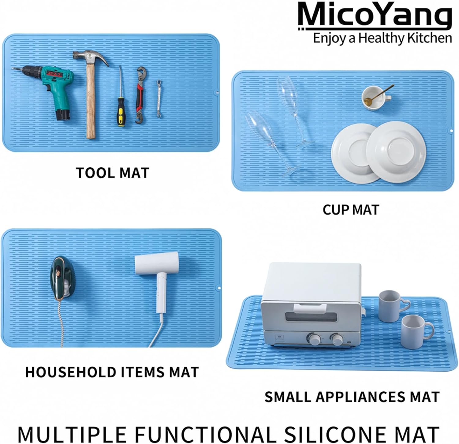 Silicone Dish Drying Mat for Multiple Usage,Easy clean,Eco-friendly,Heat-resistant Silicone Mat for Kitchen Counter or Sink,Refrigerator or Drawer Liner Light Blue 3XL 28 inches x 18 inches