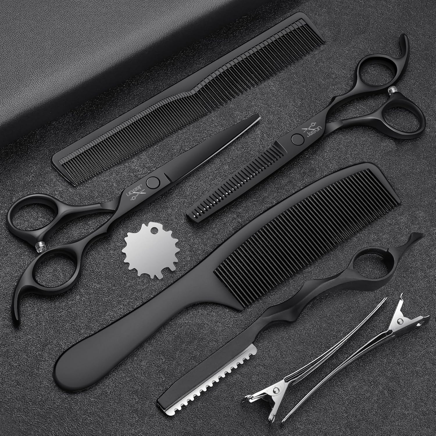 - All-in-one Scissors Set: 1 x Straight Scissor, 1 x Thinning Shear, 1 x Razor, 1 x Cleaning Cloth, 2 x Comb, 2 x Hairpin, 1 x Bag, 1 x Screw adjuster. Our scissors set meets all your haircutting and styling needs, suitable for men, women, elderly, and childern.