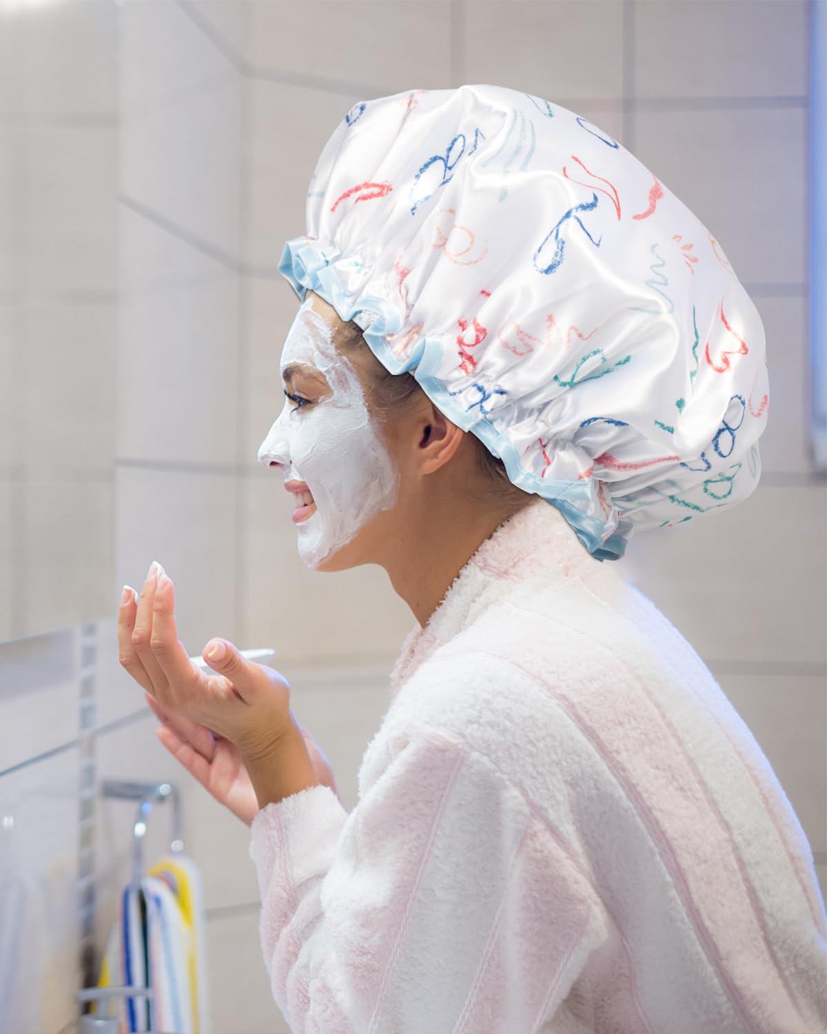 - 【COMFORTABLE】These reusable shower cap won’t leave an annoying elastic band on your forehead, though they're still strong enough to keep your hair from falling out. Not tight- enough elastic for a perfect fit. Easy to put on and off
