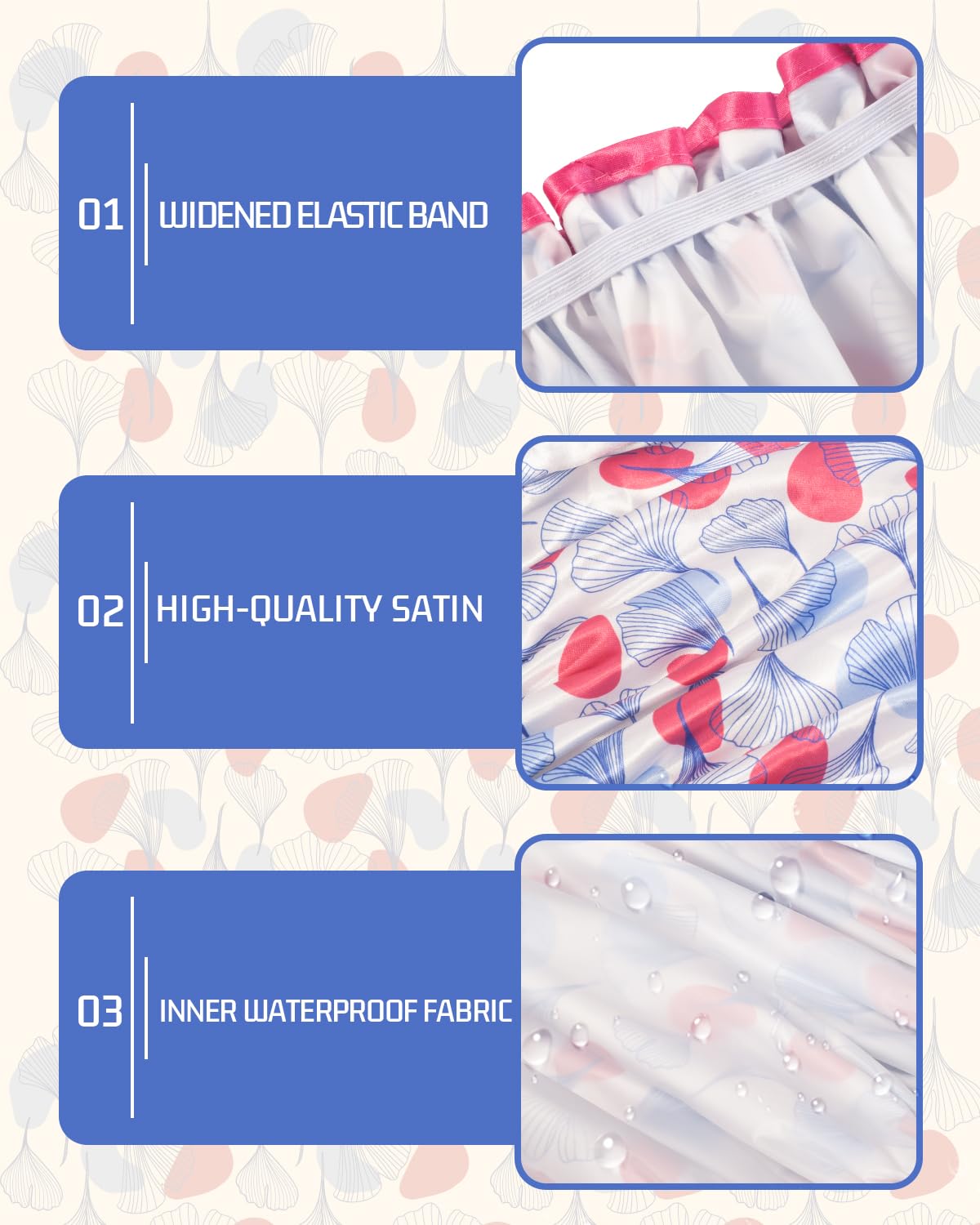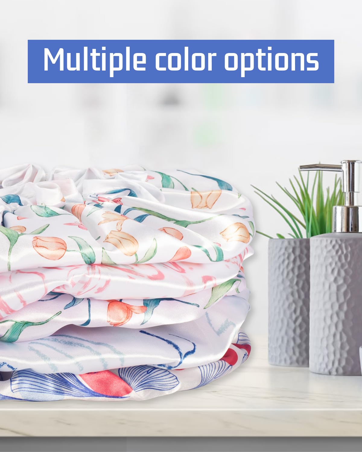 - 【COMFORTABLE】These reusable shower cap won’t leave an annoying elastic band on your forehead, though they're still strong enough to keep your hair from falling out. Not tight- enough elastic for a perfect fit. Easy to put on and off