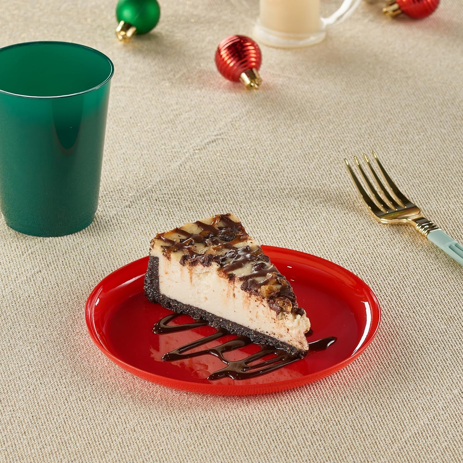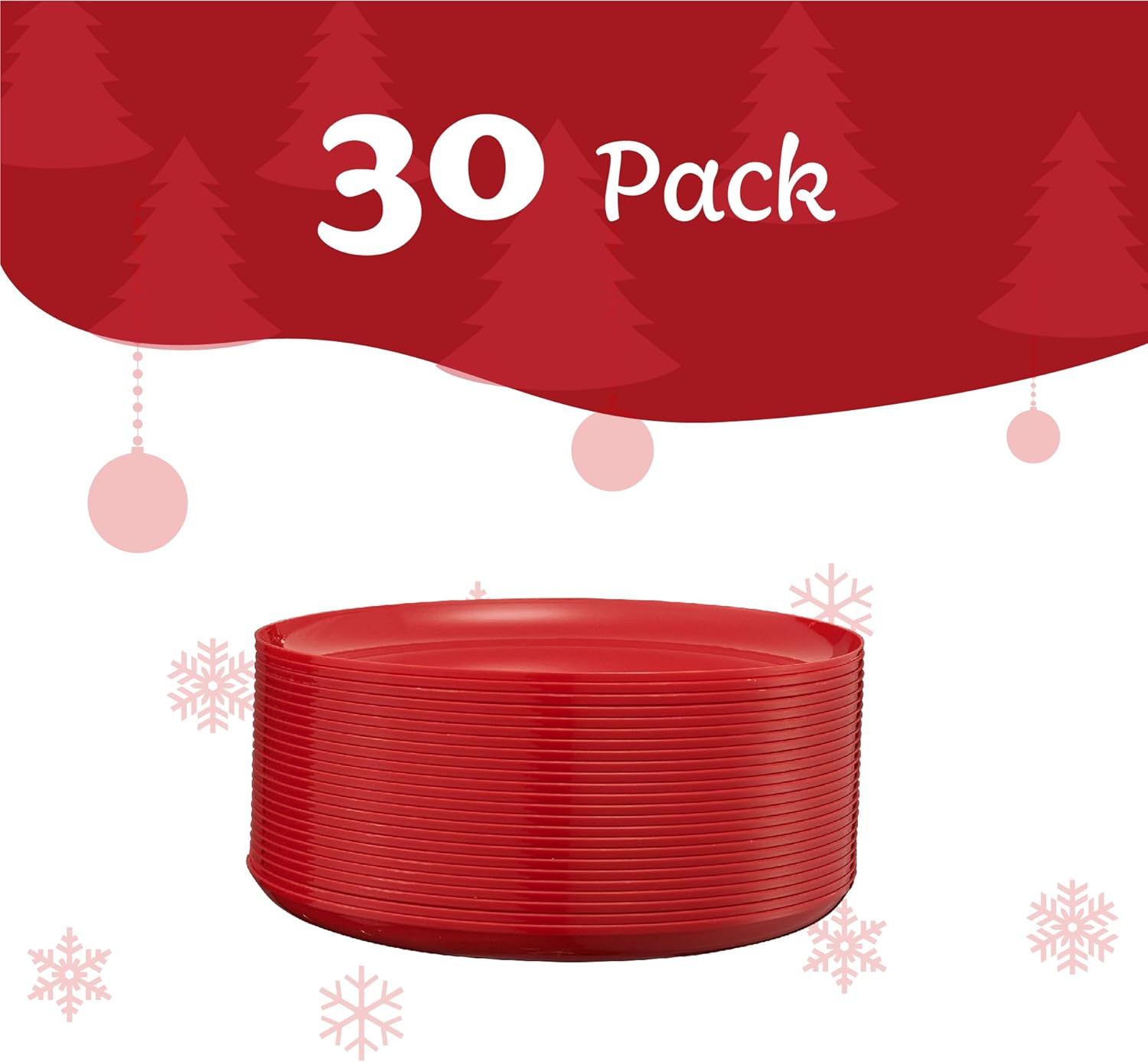 PLASTICPRO 30 Pack 6.3'' Christmass Plates Red Plastic Party Plates Edge Collection Premium heavyweight Elegant Disposable Tableware Dishes