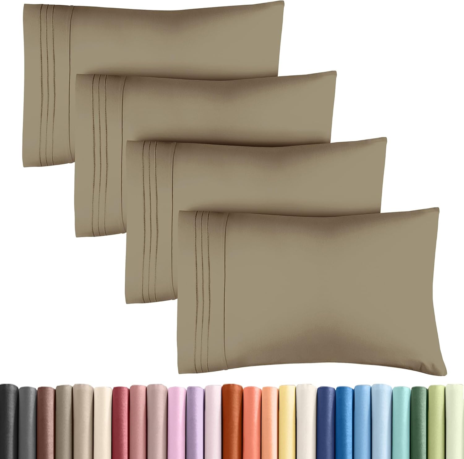 King Pillow Cases Set of 4 - Ultra Soft Hotel Quality Pillowcase Covers - Comfy, Cozy & Wrinkle Free - Shrinkage, Stain and Fade Resistant - Machine Washable Pillow Protectors - 4 Piece Set - Khaki