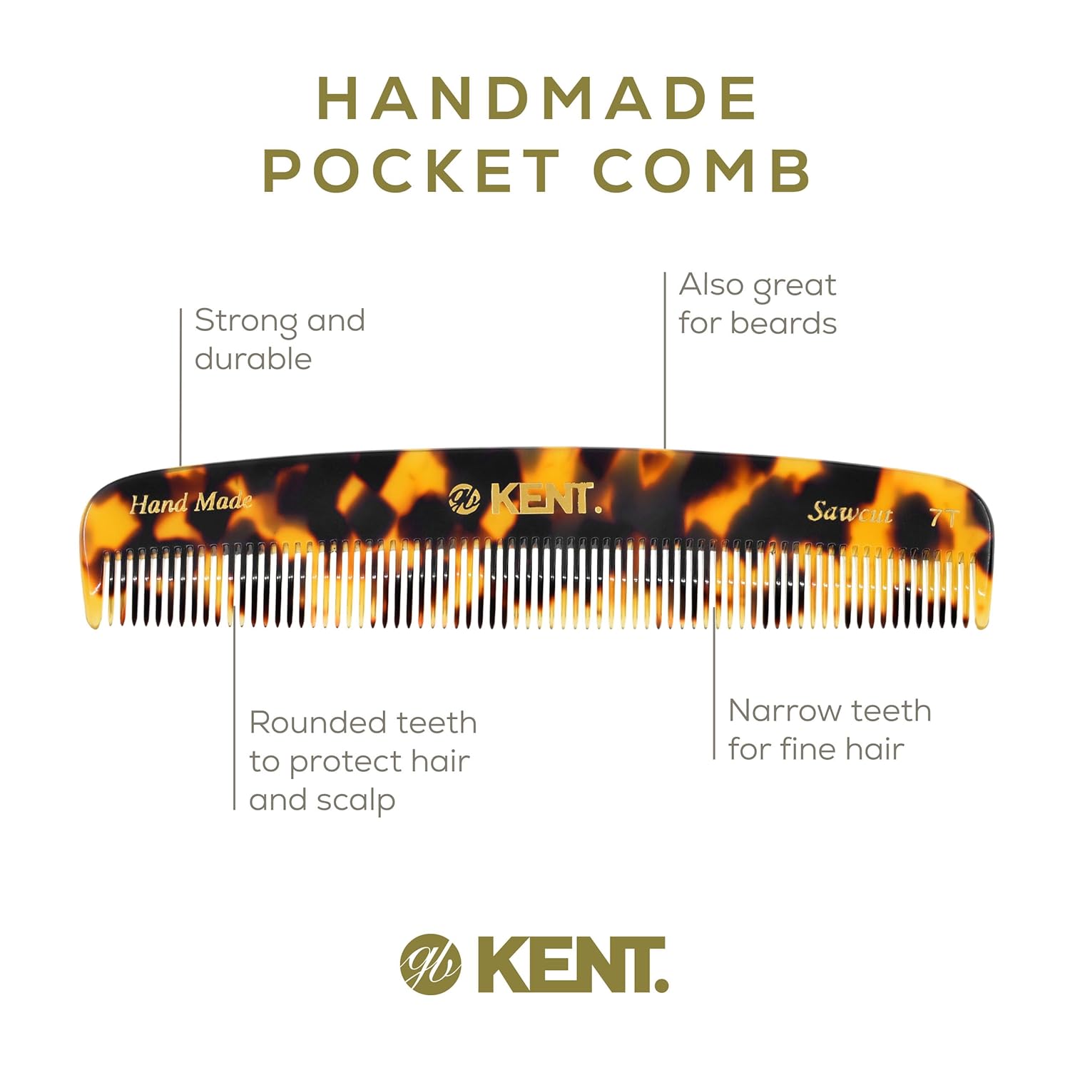 - GENTLE GLIDING COMB: The hand sawn combs are the nature of Kentâs Success. Cellulose acetate is a tactile, yet flexible and strong matrial. They glide effortlessly through hair without scratching or damaging the hair or scalp. Kent Combs have rounded teeth which ensure smooth and comfortable action.