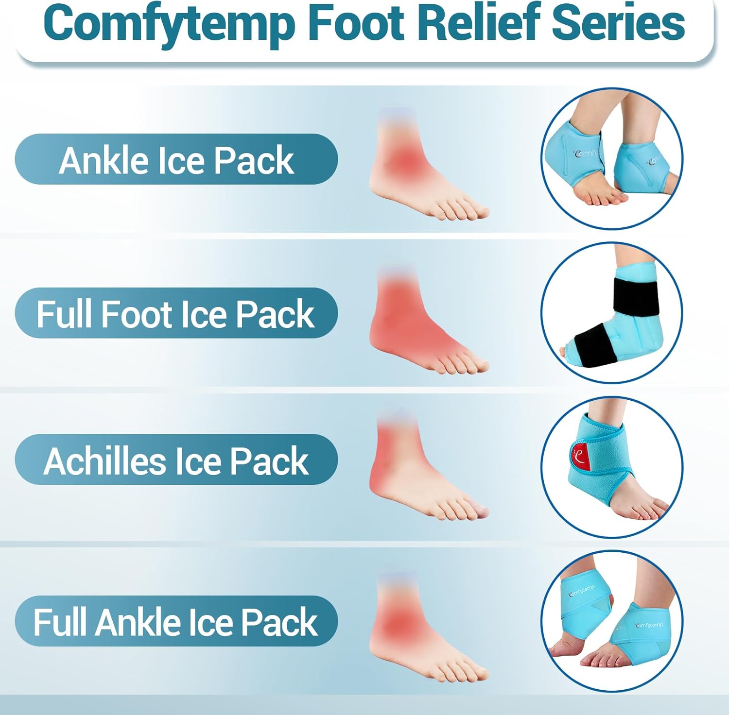 - Expert-grade Gel for Colder and Longer: Comfytemp ice pack for ankle pain filled with expert-grade gel, allowing the foot ice pack stays smooth and pliable even when frozen, ensuring a deeper and longer-lasting cold therapy, and allowing you to go about your daily activities. From athletes chasing peak recovery, to elderly individuals easing daily discomfort, to post-surgery patients seeking gentle supportâComfytemp delivers cold therapy that goes further, ensuring comfort at every step.