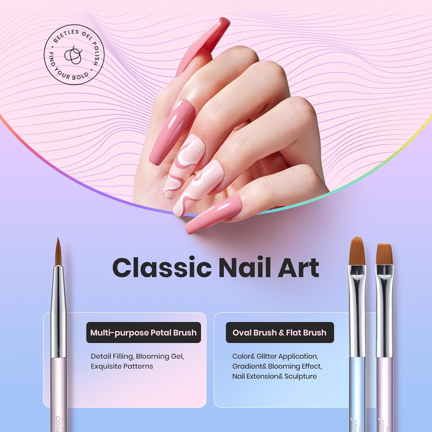 - 【What You Get】:Our Gel Nail Brushes Set includes Petal Painting Brush and long Liner Brush*1,Flat Brush and medium Liner Brush*1,Oval Brush and Short Liner Brush*1.