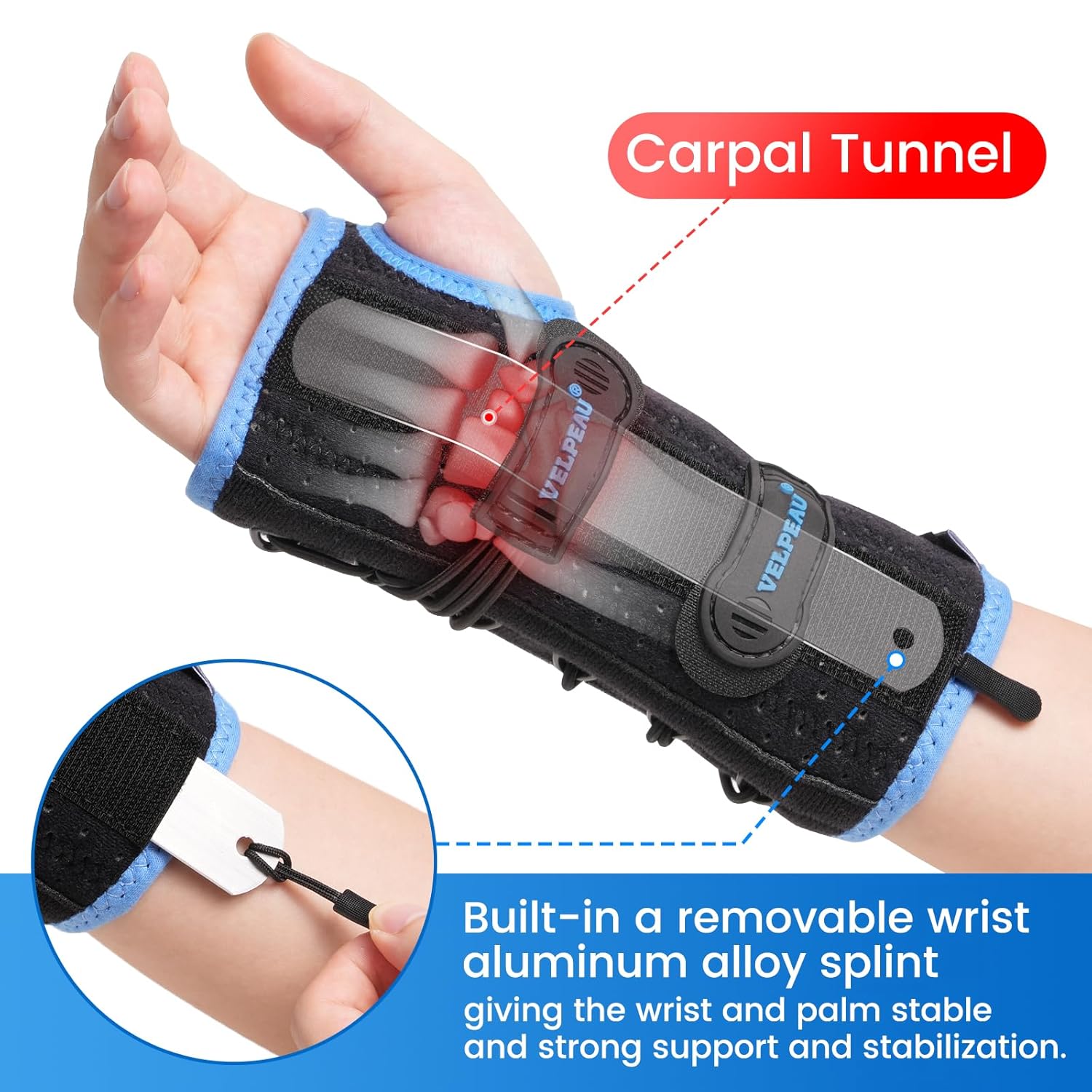 Velpeau Wrist Brace for Carpal Tunnel, Adjustable Elastic Tension Cords with Splints, Night Wrist Support for Arthritis, Tendonitis, Sprain, Injuries, Wrist Pain Relief Women and Men (Right Hand, M)