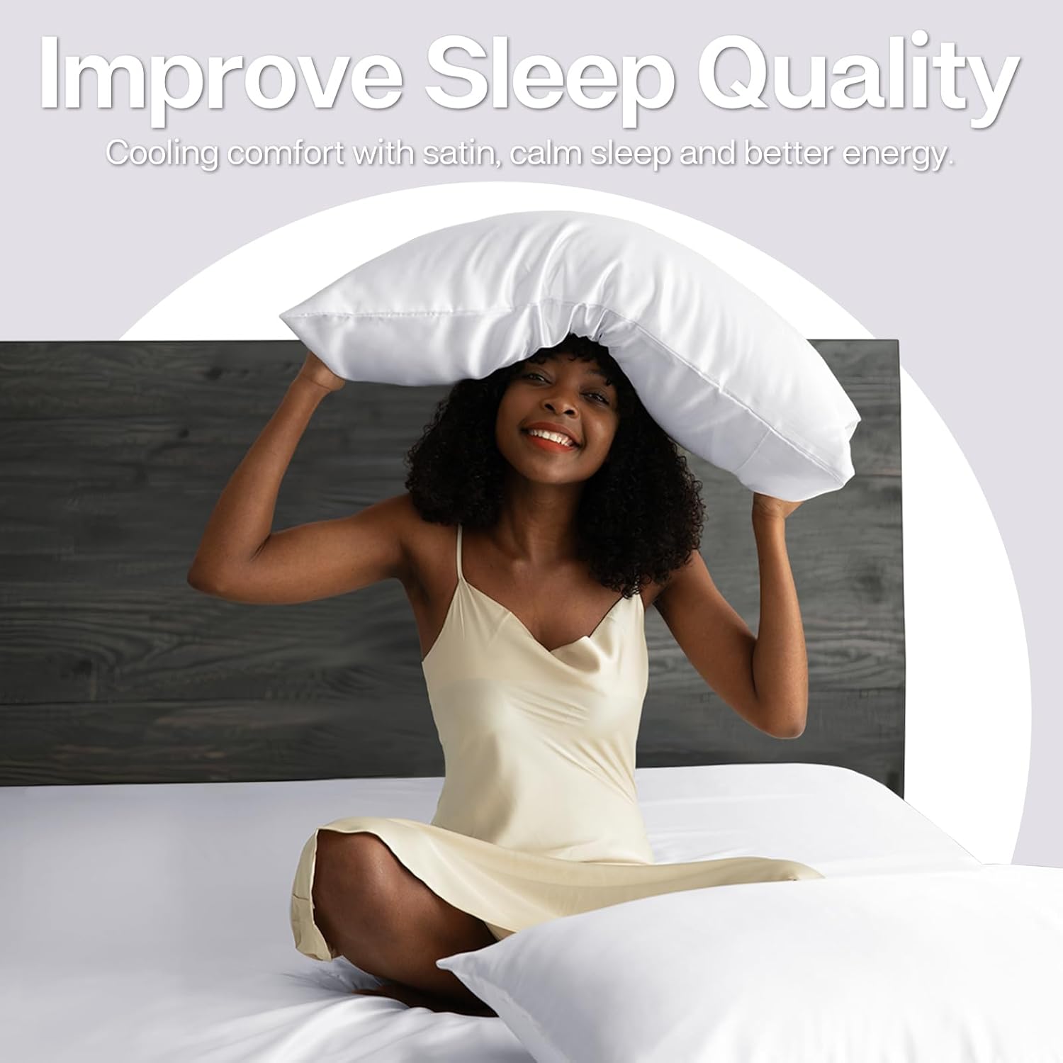 - 【Enhance Your Beauty Sleep】Sleeping on our hypoallergenic non-irritating satin pillowcase can help your skin, too. With less friction tugging at your skin as you sleep, you will experience fewer sleep lines which can equal fewer wrinkles over time.