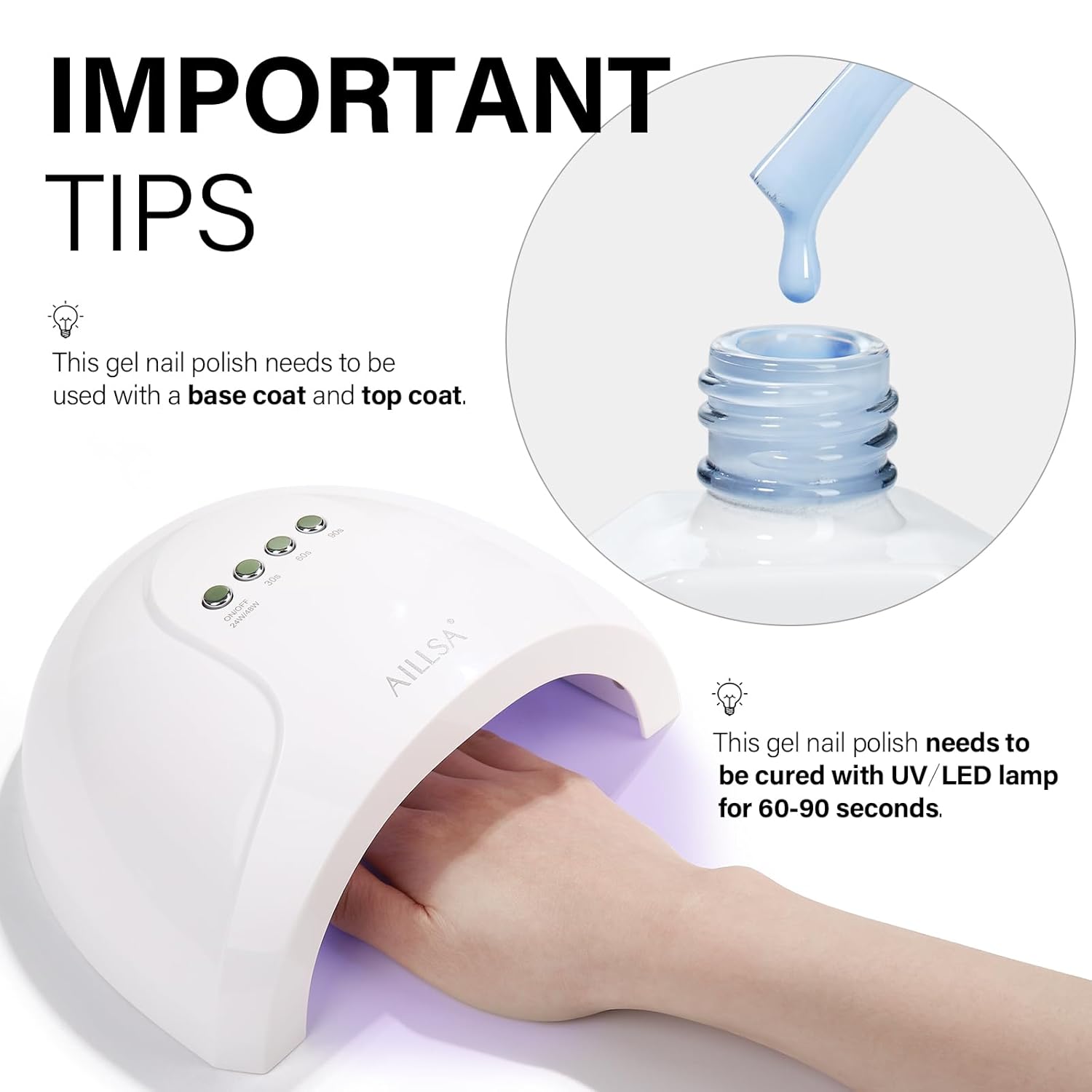- LONG-LASTING SHINE - AILLSA spring and summer gel nail polish needs to be cured under L E D/U V lamp, under the correct use steps, it can last for 21-28 days and keep the shiny luster. You'll never have to worry about your nails peeling off while showering and doing housework. Let AILLSA serve you a longer time!