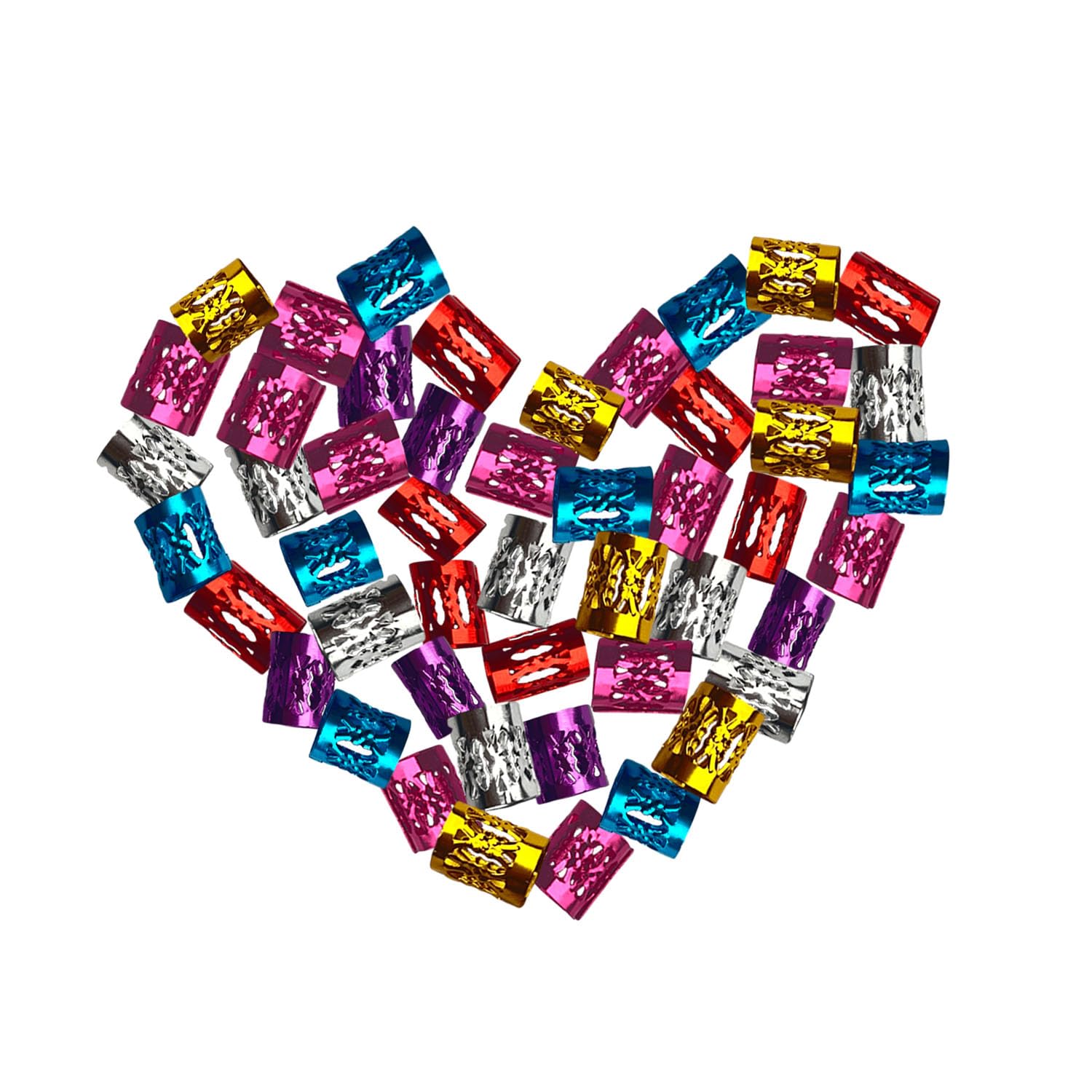 SEVENHEAD 50 Pcs Dreadlock Beads Hair Accessories Adjustable Braiding Rings and Cuffs with Metal Clips (Multicolor)