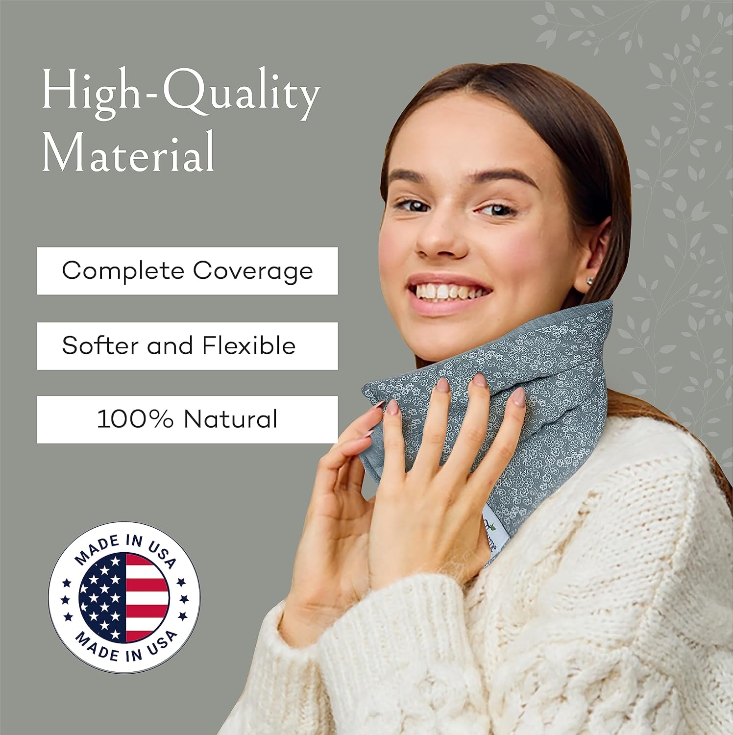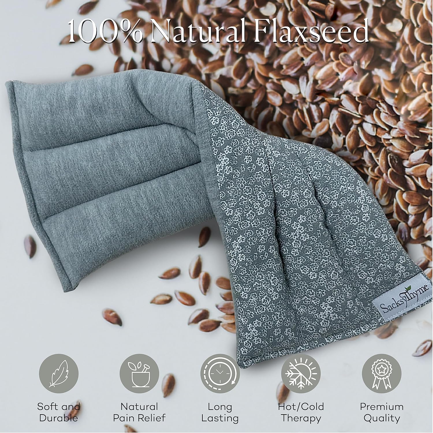 SacksyThyme Microwave Heating Pad for Back, Neck, Menstrual Cramps, Shoulders, Leg Pain Relief - Hot Moist Microwavable Therapy Pack - Gray Unscented Flaxseed Heat Pad Made in USA