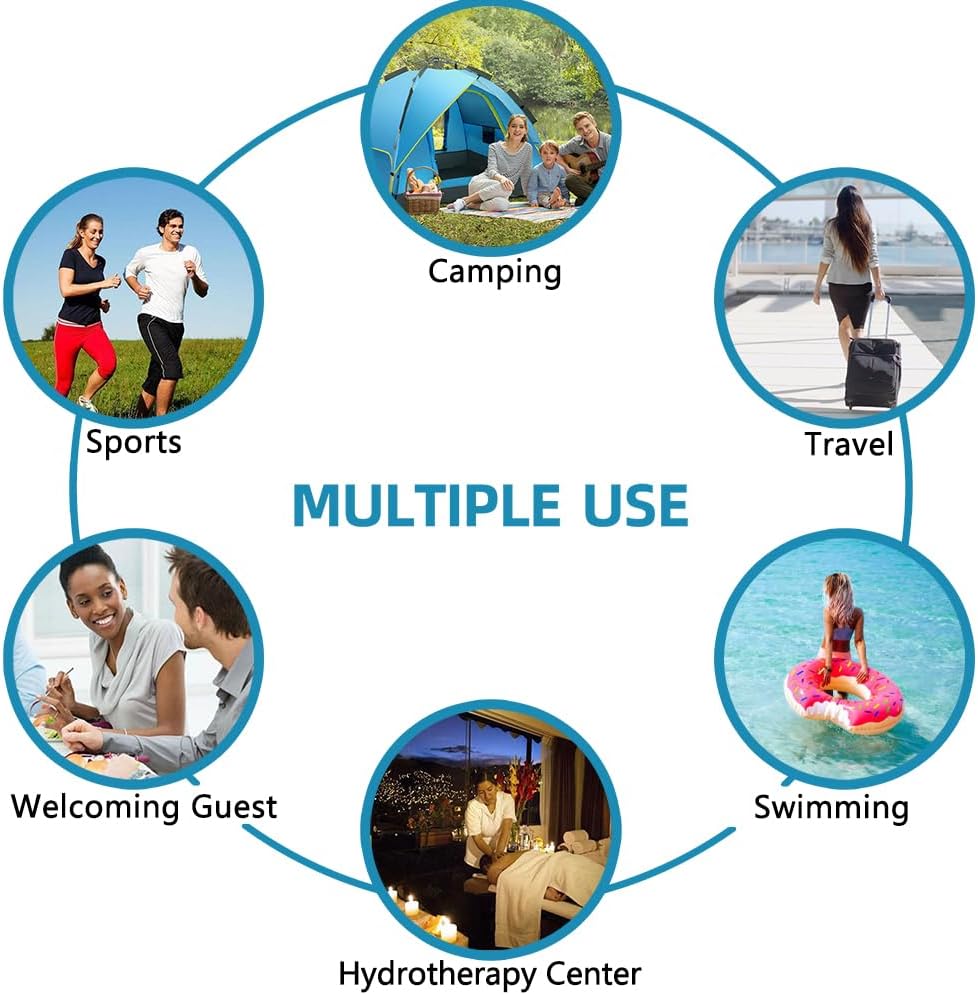 - Magic Towel: Simply drop the small towel tablet into cold or warm water for a few seconds, and it will instantly expand to a 63x31 inch bath towel. This is larger and thicker than similar products on the market, making it perfect for drying off after a shower or swim.