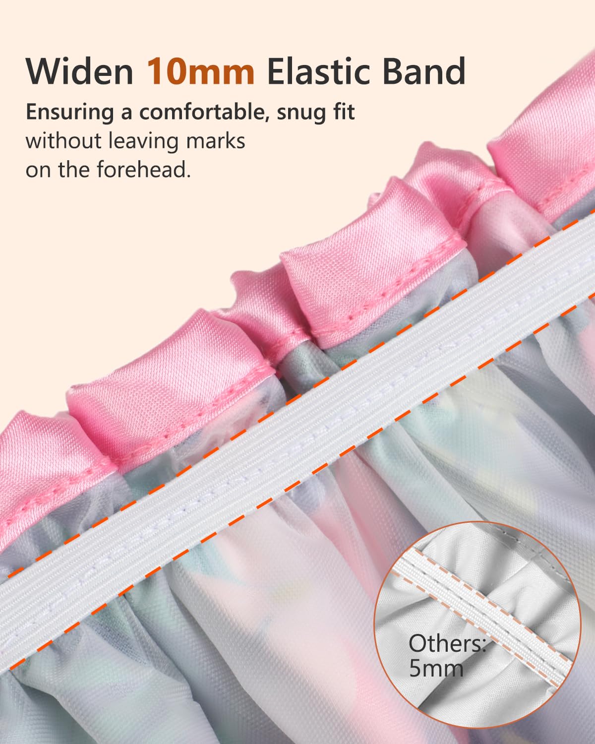 - đSuperb Waterproof -- This shower cap features a double layer and a wide elastic band, ensuring a snug fit without leaving marks. The unique 20mm lace curves outward at a 30-45 degree angle, effectively isolating water droplets and keeping the forehead and neck dry.