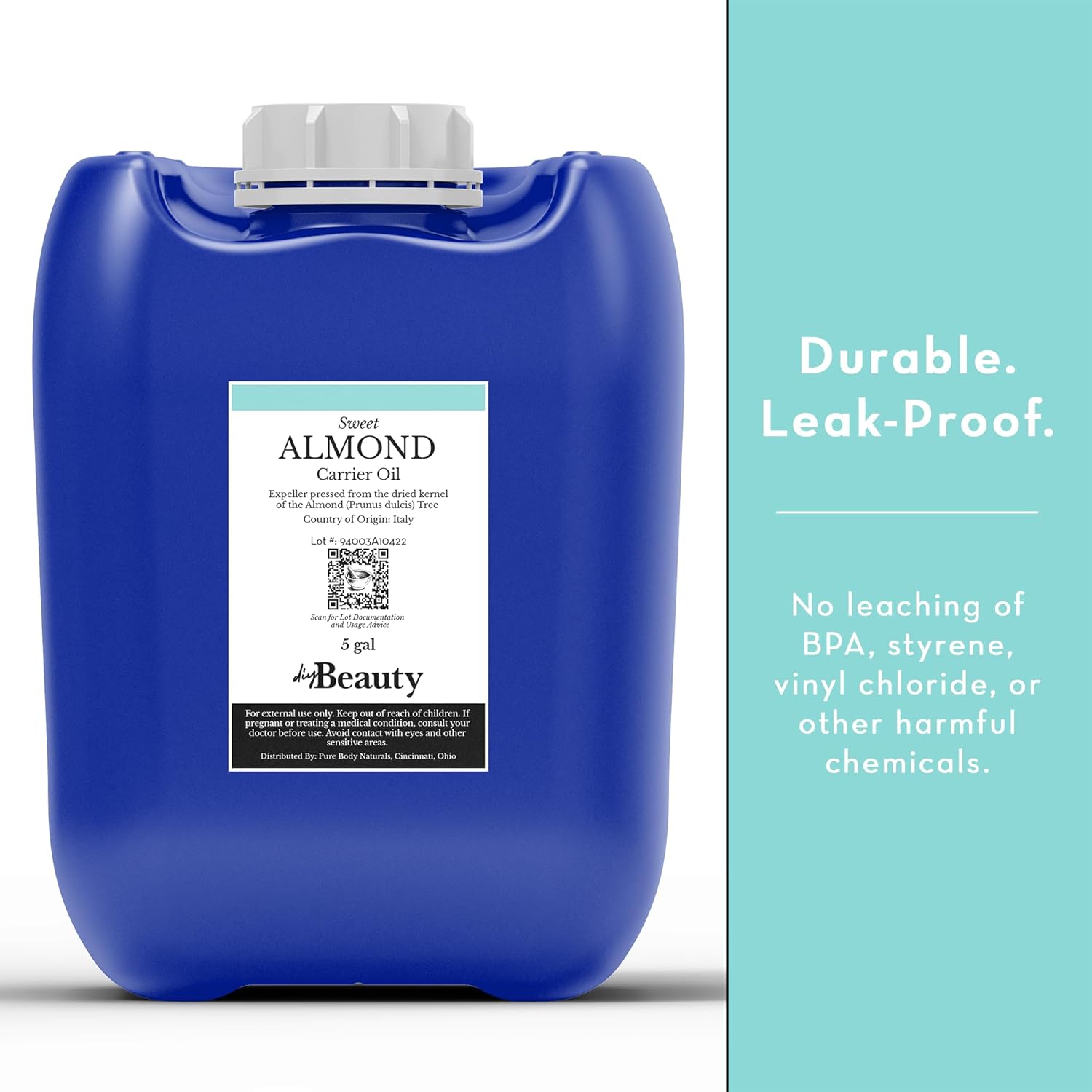 Bulk Sweet Almond Oil - Large 2.5 Gallon Jerrican, Cold Pressed 100% Pure - Moisturizer for Skin, Hair, Body, Carrier Oil for Massage Oils - by DIYBeauty