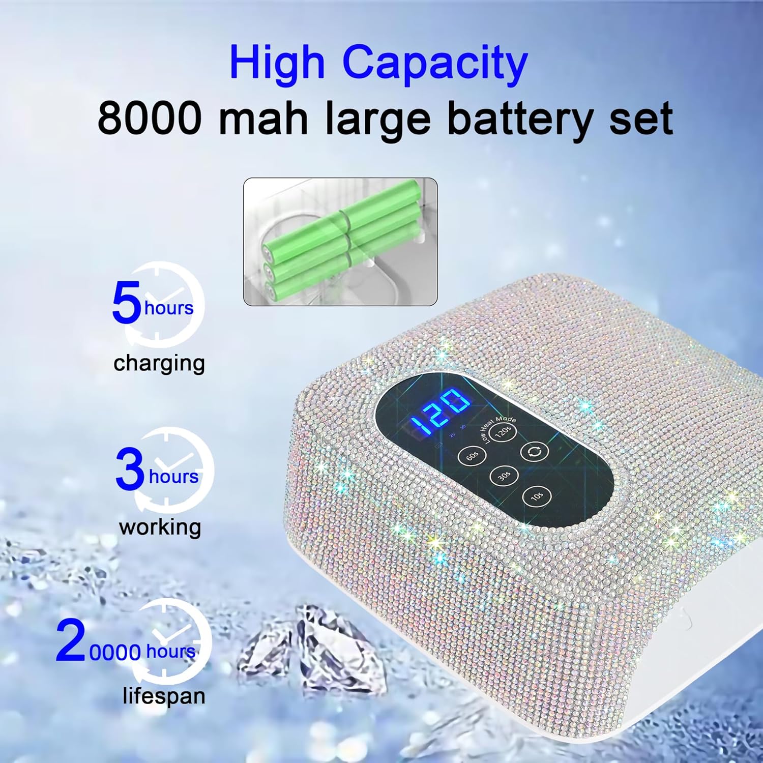 - 【𝗦𝗽𝗮𝗿𝗸𝗹𝘆 𝗥𝗲𝗰𝗵𝗮𝗿𝗴𝗲𝗮𝗯𝗹𝗲 cordless 𝗻𝗮𝗶𝗹 𝗹𝗮𝗺𝗽】This cordless UV Led nail lamp built-in 8000mAH rechargeable battery, and the premium quality battery can be used for 3 hours after being fully charged. It suitable for use in the home and outdoor, you can take it anywhere you want.This UV nail dryer is the best choice DIY at home or salon or friends' parties.