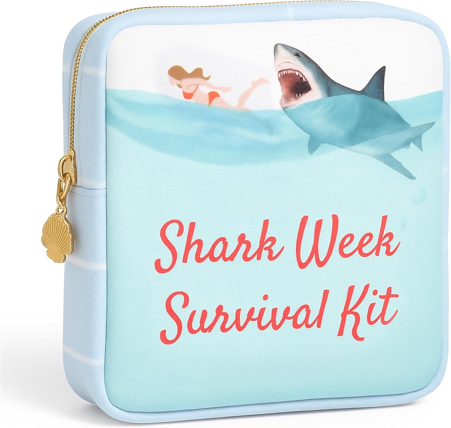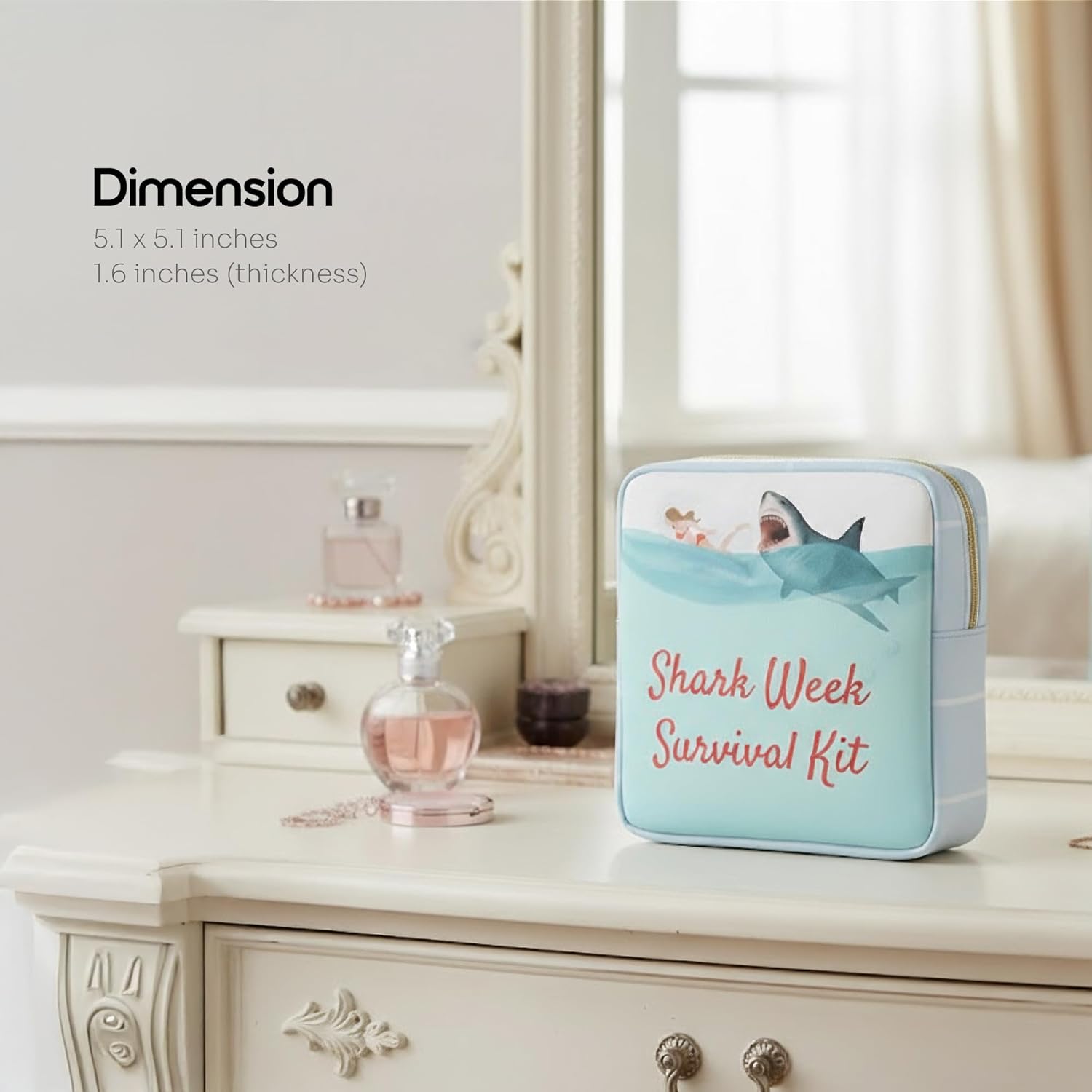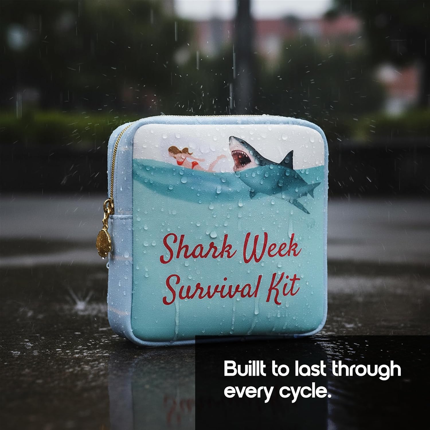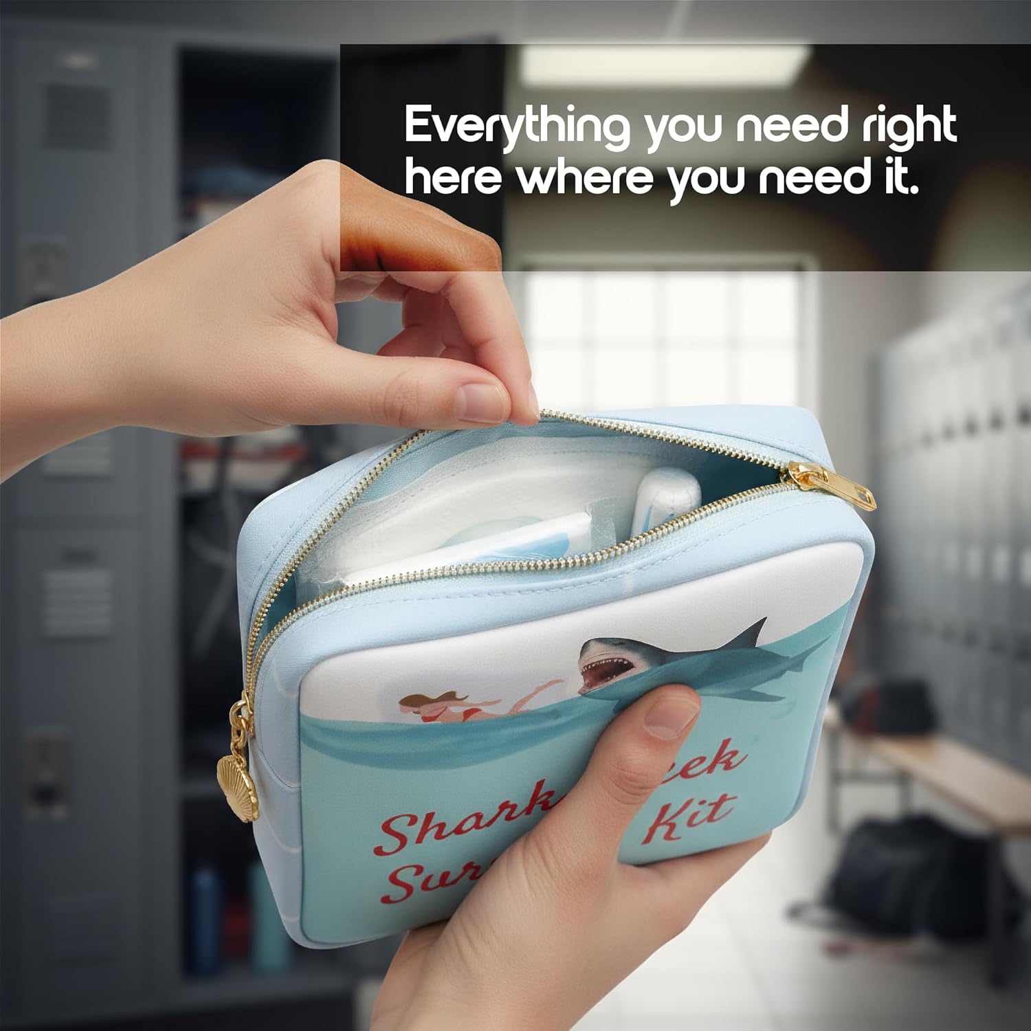 Primo Lines Period Bag for School – Compact Discreet Tampons & Pad Pouch with Waterproof Lining, Cute & Stylish Period Pouches for Teen Girls for School and Travel, First Period Kit (Shark Gifts)