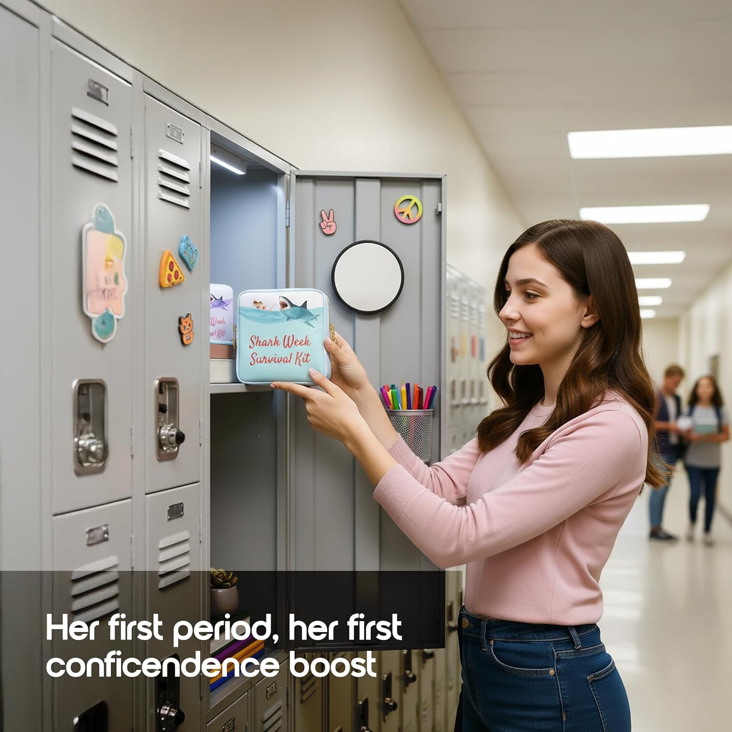 - DISCREET & COMPACT – Slim 5"x5" period bags for teen girls for school, keeps pads, tampons, and wipes hidden yet accessible. Fits easily in backpacks, purses, or lockers, giving teens and women privacy, confidence, and convenience at school, work, or on the go. Designed to sit flat on counters or locker shelves without slipping.