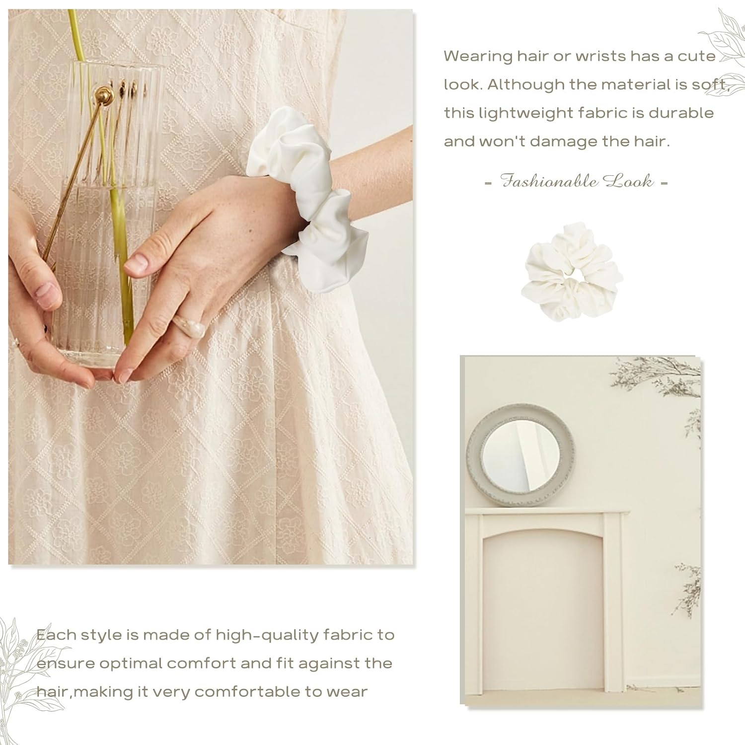 - Product Contains:A pack contains four solid color premium silk scrunchies.This fabric incorporates satin luster properties and is exclusively developed.Not a strong sheen, but a shimmer visible to the naked eye, which is more advanced