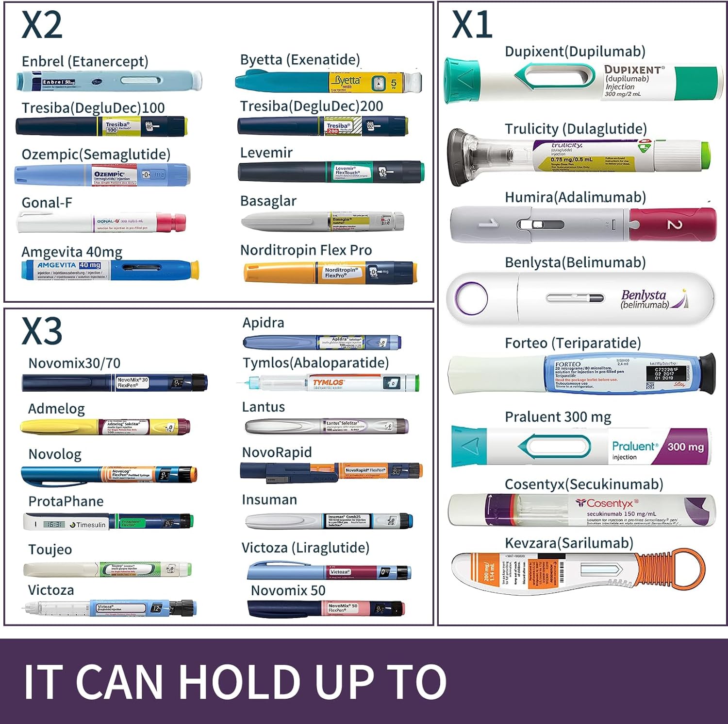 - Satisfy your medication cooler travel needs : The insulin travel cooler can storage 2 Insulin pen in normal size, that can sufficiently accommodate all your needs, starting from most basics trips around the city to the most extreme condition environments. The Insulin travel case medication organizer you need.