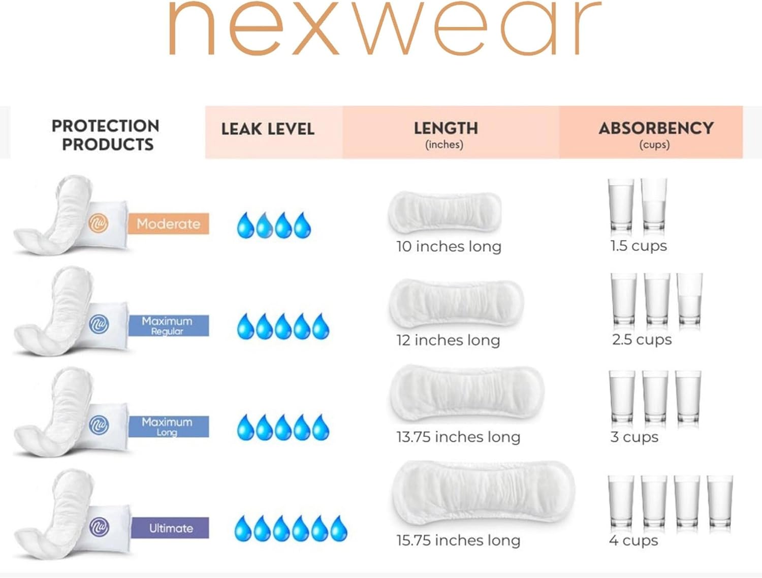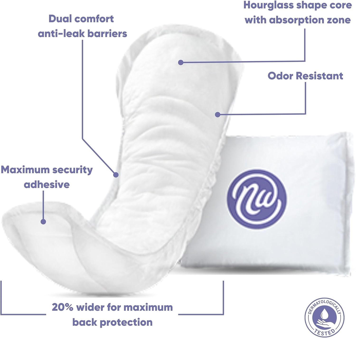 - Skin-safe design: No need to worry about design dyes, fragrances, carcinogens, latex, or leaks with Nexwear's reliable and discreet protective pads for women
