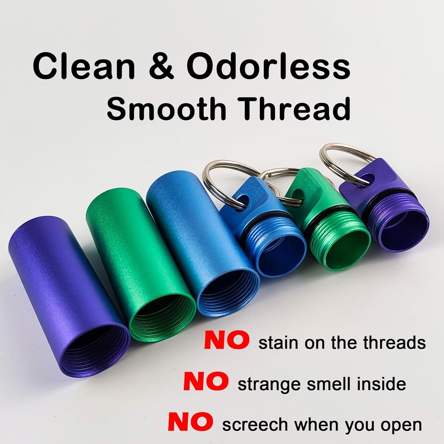 Small Pill Organizer Box Waterproof Keychain Pill Holder Portable Travel Pill Container Metal Case with Keyring for Outdoor Camping Travel