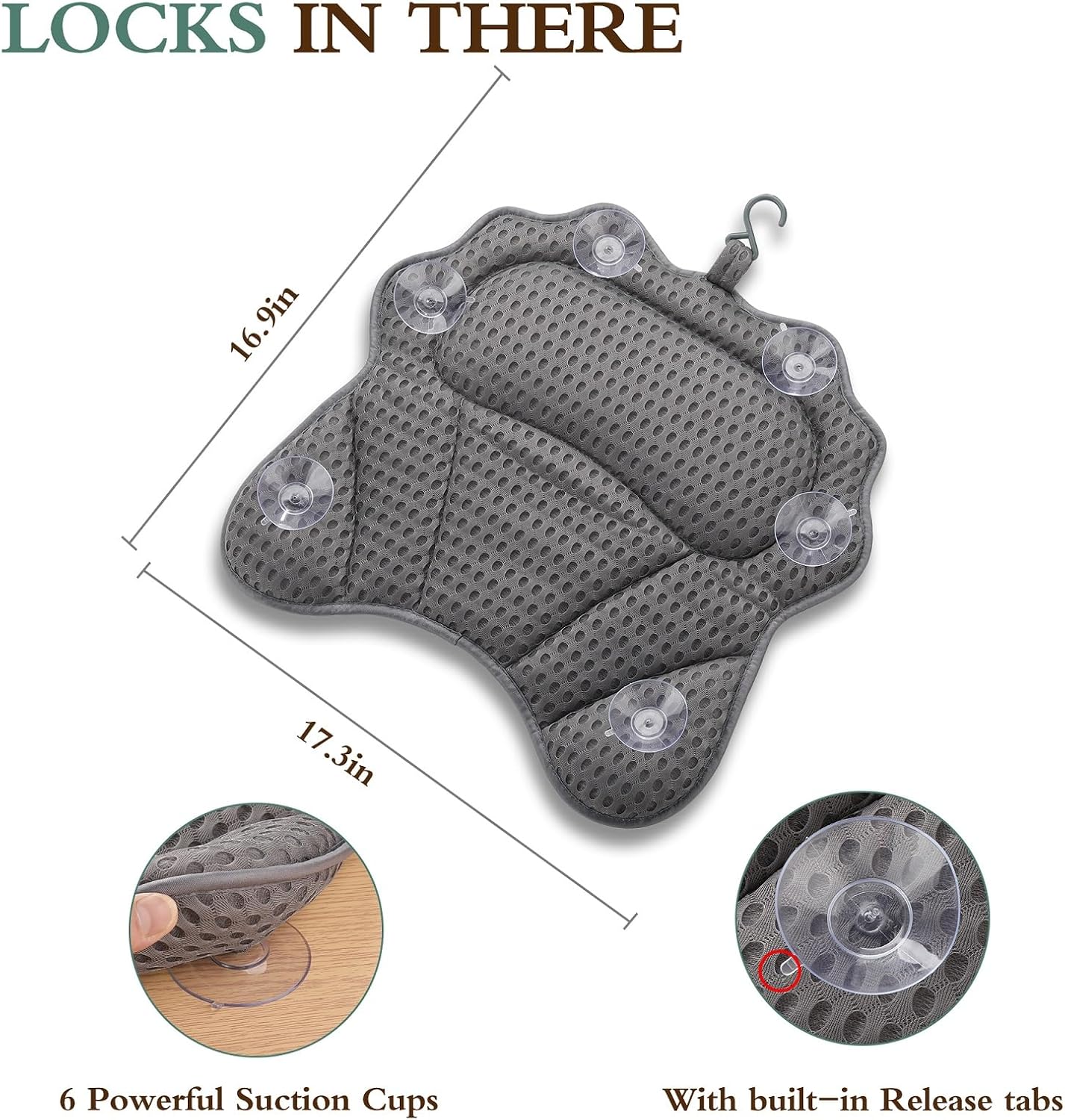 - šćPowerful suction cupsć Equipped with 6 powerful suction cups, which can prevent your tub pillow from sliding and moving normally.