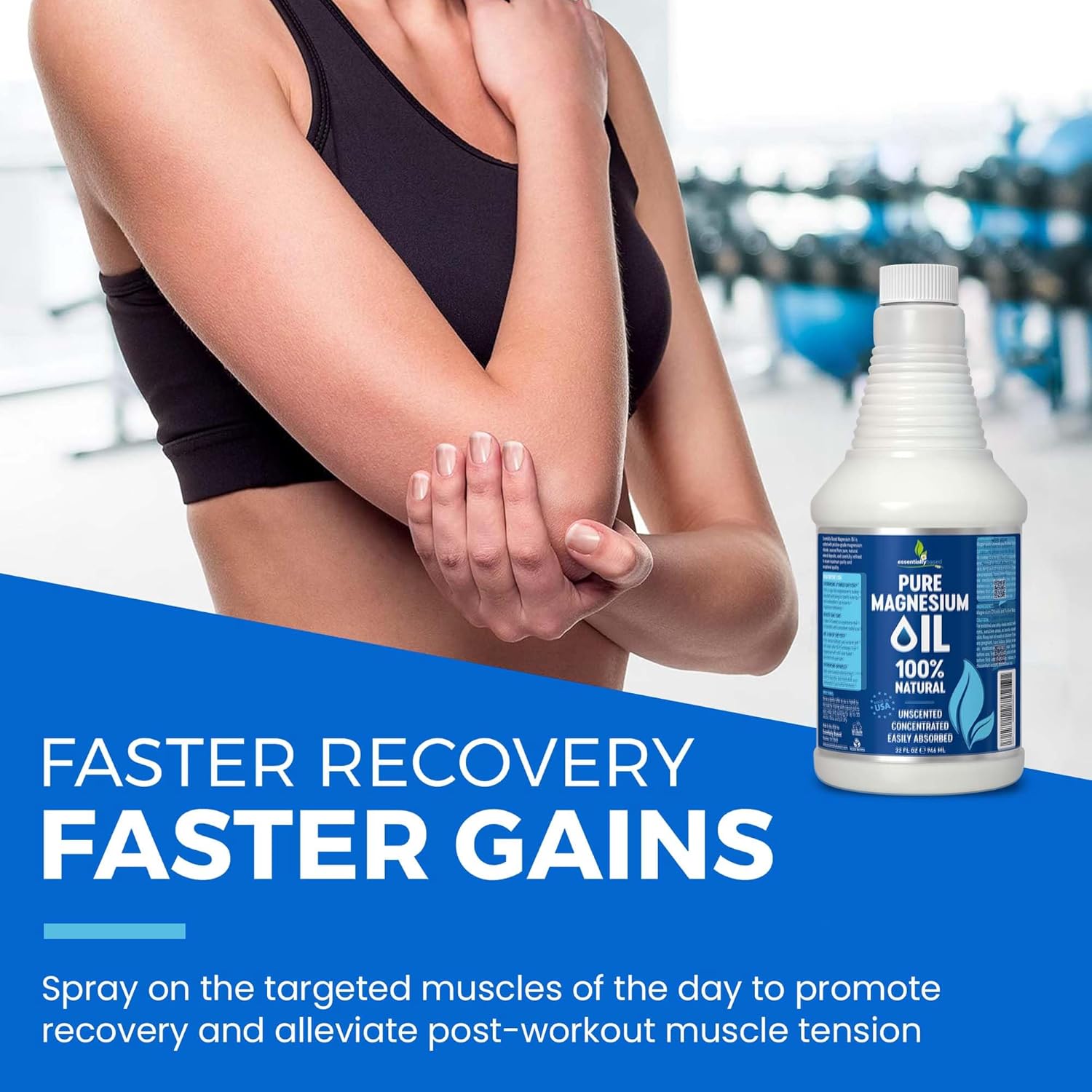 Pure Magnesium Oil Spray 32oz - Topical Magnesium Spray for Sleep Extra Strength - Less Sting - Less Itch - 100% Natural and Organic Oil - Made in USA