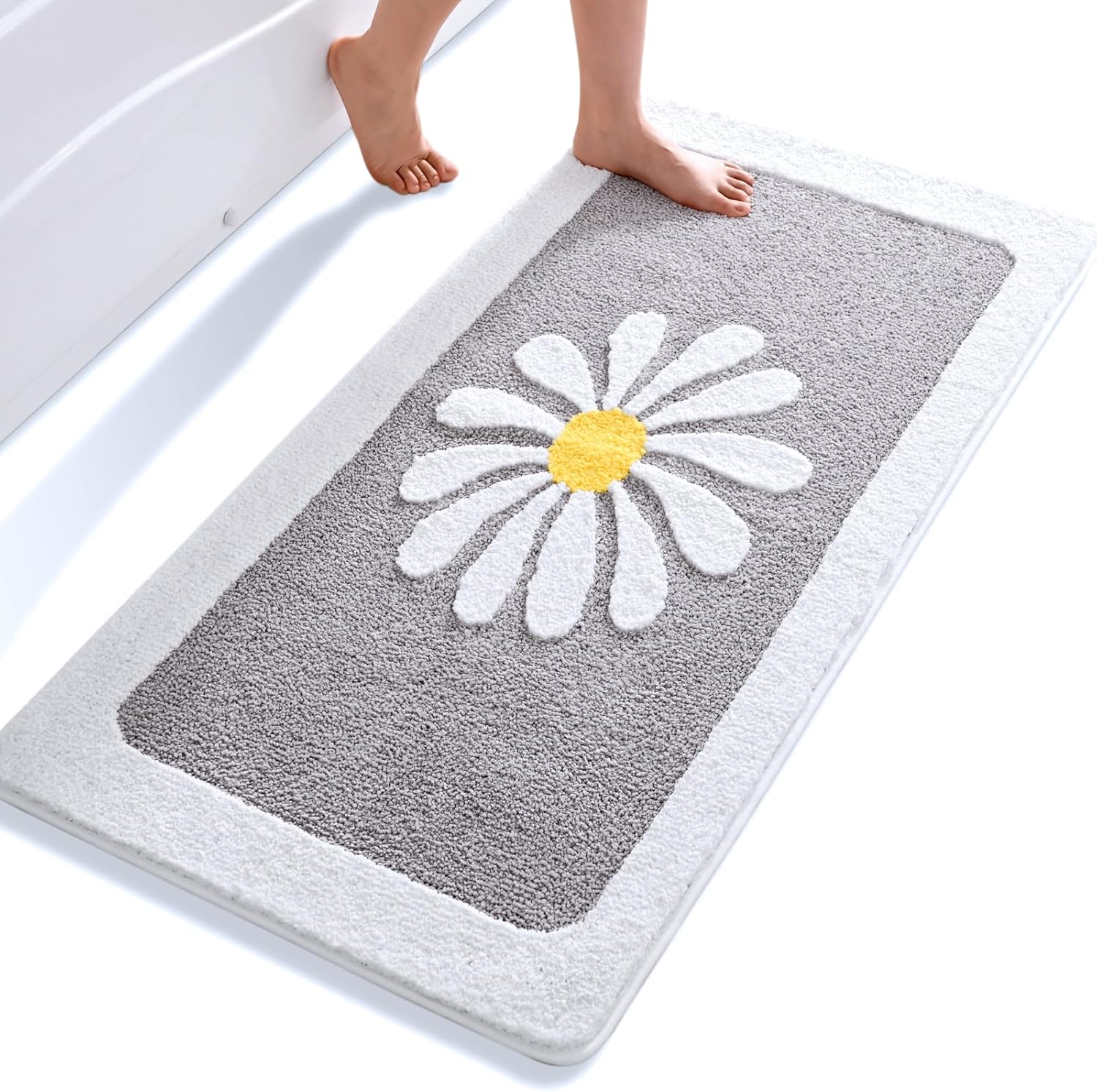 Bathroom Rugs Mat, White Flower Bath Rugs Fluffy Soft Superfine Fiber Rugs Non Slip Bath Mat Machine Wash Plush Mats,Bathroom Rug for Bathroom Shower Room (24x48, Gray)