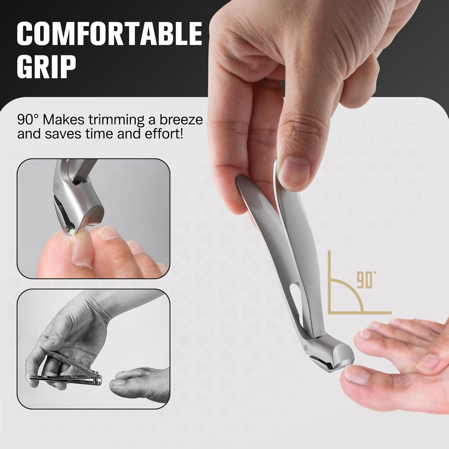 - Suitable for Everyone: Whether you're a professional nail technician or looking for a home nail care tool, our angled head precision toenail clipper is the perfect choice. It is particularly helpful for middle-aged and elderly individuals with problematic nails or those who face challenges due to difficulty bending. Make nail care easier and more