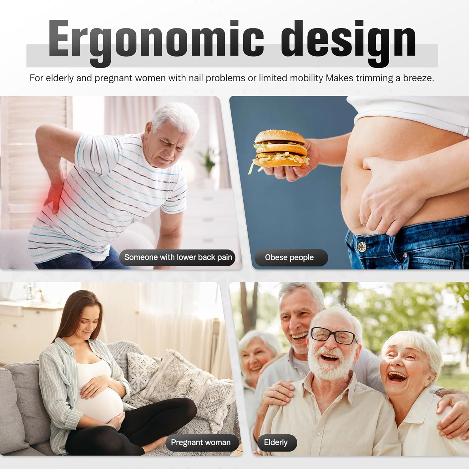 - Ergonomic Design for Comfort: We understand the importance of comfort, especially for seniors with problematic nails or limited mobility. Our toenail clipper is thoughtfully designed with long and wide handles that provide a comfortable grip. The ergonomic design makes trimming a breeze, saving you time and effort!