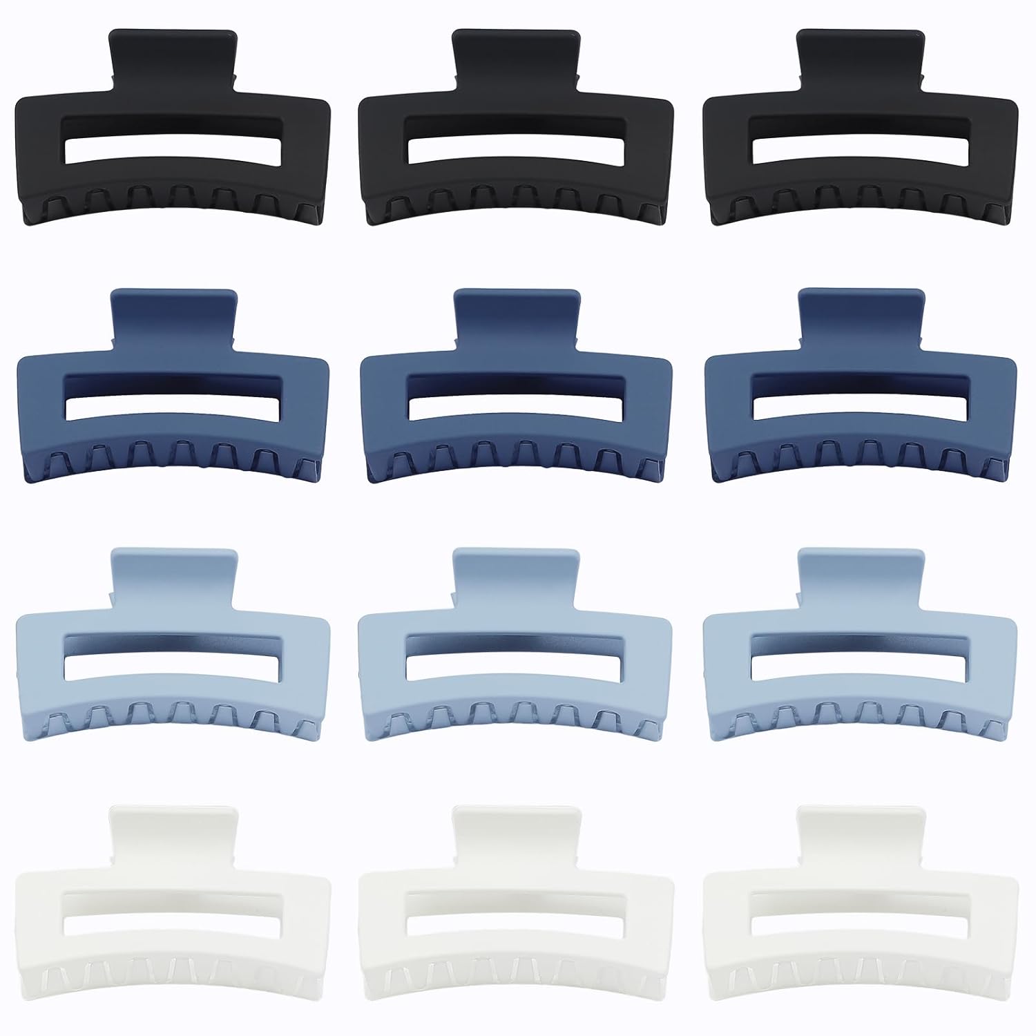12 Pcs Medium Hair Clips, 3.5 Inch Square Claw Clips for Thick and Thin Hair - Blue