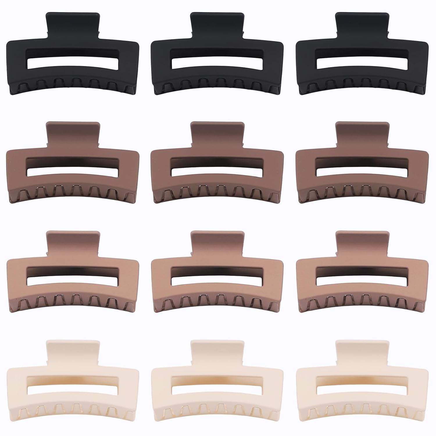 Hair Claw Clips, 3.5 Inch Medium Square Jaw Clips 12 Pcs for Thick and Thin Hair - Matte Black, Dark Brown, Light Brown, Bulk Hair Accessories