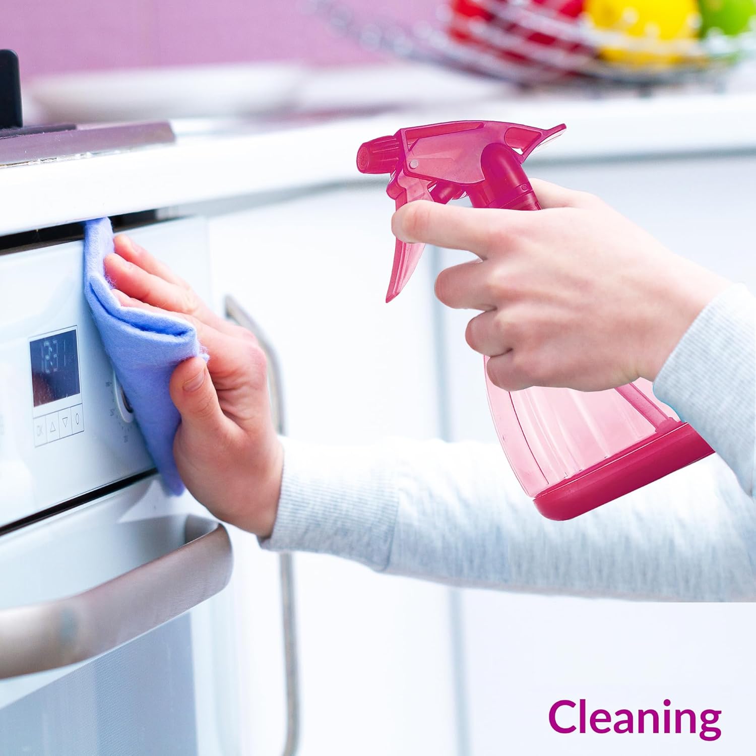 - 【Vibrant Pink Spray Bottles – Stylish, Functional Design】 Add a pop of color to your routine with these vibrant pink spray bottles. The translucent design makes it easy to see the contents at a glance, so you always know when it’s time to refill. Each water bottle spray holds up to 12 oz (355 ml) of liquid - perfect for car detailing, cleaning solutions, essential oils, alcohol and hydrogen peroxide, hair products, or plant care. Measuring 3.2 inches wide by 7.5 inches tall, each one is designed as a spray bottle small enough for a comfortable grip and to fit neatly on shelves, in drawers, or travel bags. Style meets practicality in every spray.