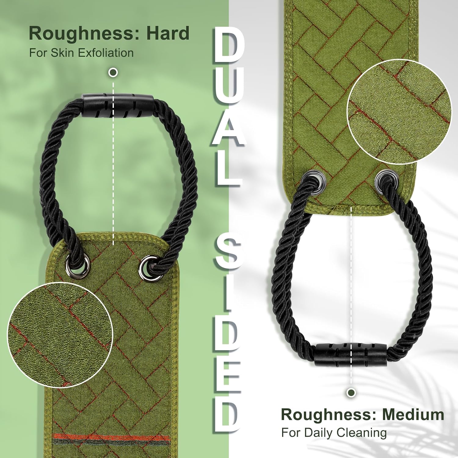 Exfoliating Back Scrubber with Upgraded Handles, 38.5 Inch Double-Sided Body Scrub Bath Exfoliator, Exfoliating Washcloth for Use in Shower, Back Washer to Deep Clean Your Skin for Men & Women (Green)