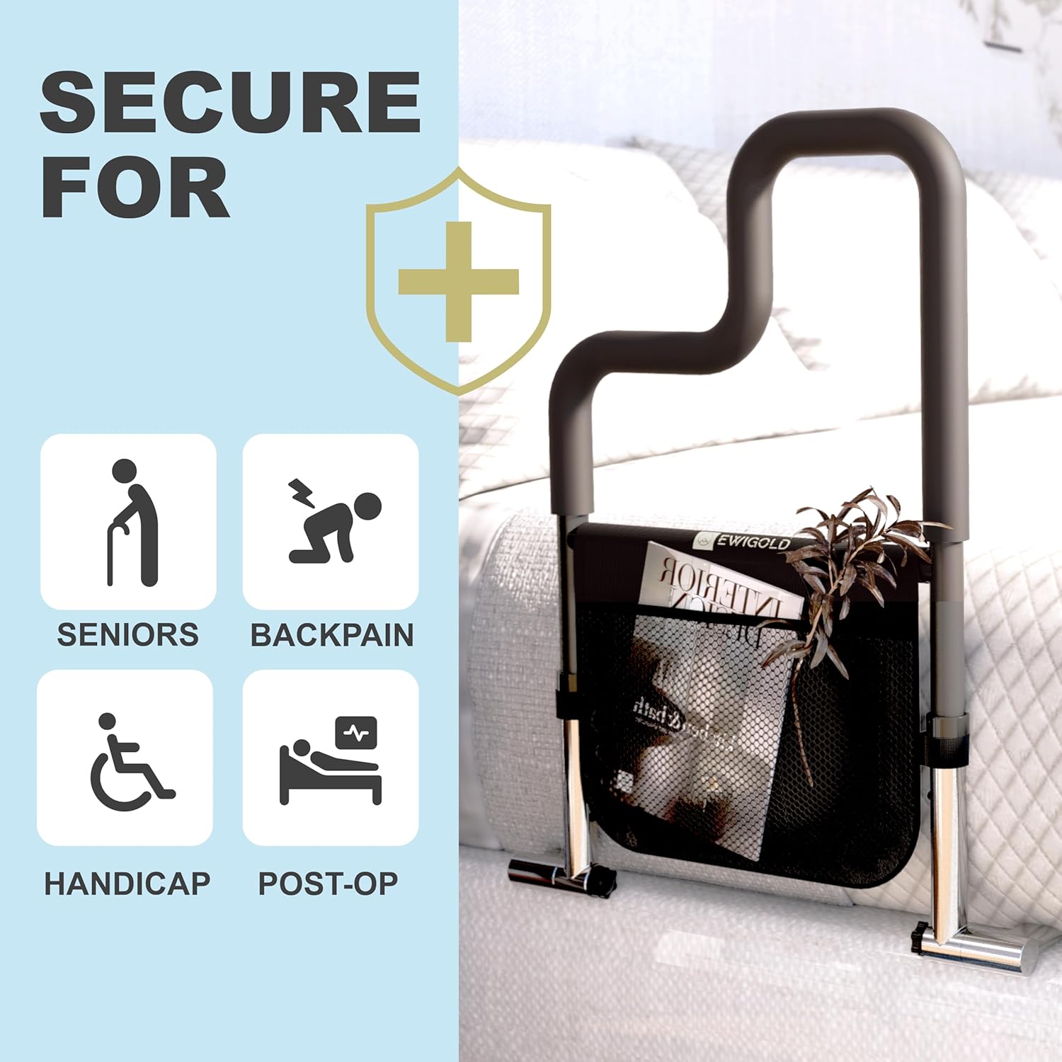 - Convenient Design - This bed side rail incorporates a storage pocket for keeping essentials within reach. The adult bed rails are designed to provide a comfortable, secure grip for elderly adults, serving as a practical bed assist bar with storage pocket. This bed assist bar with storage pocket is a necessary bed rails for elderly adults. It's ideal for seniors who require bed assist rails or as a bed cane assist handle. It also works as a bariatric hospital bed rail.
