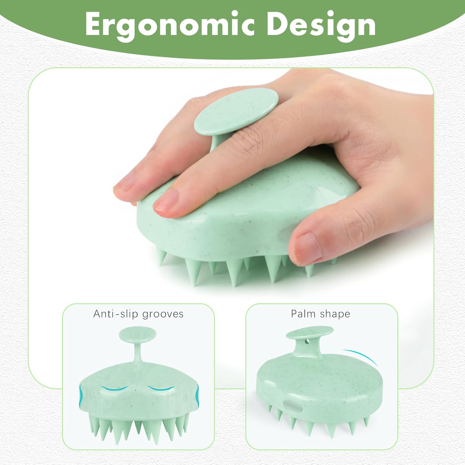 - 【Ergonomic Design】 The mouse-like handle fits your palm perfectly, non-slip grooves ensure a stable grip even in the shower. The concave brush surface formed by 25 tips fits the scalp for maximum working area.