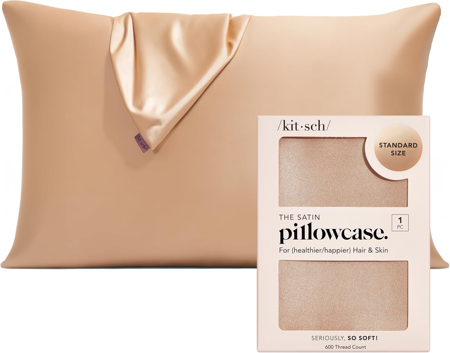 Kitsch Satin Pillowcase with Zipper for Hair & Skin, Softer Than Silk Pillow Cases Queen, Wrinkle-Free, Smooth and Cooling Satin Pillow Covers, Standard Size 19"x26" - Champagne
