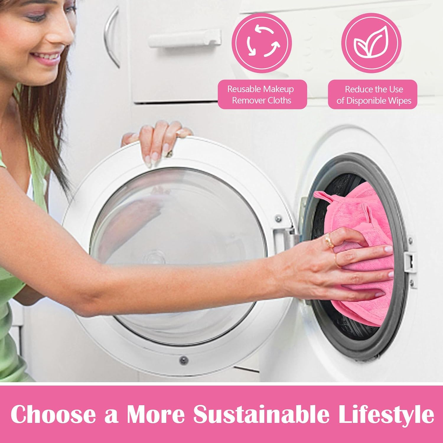 - LONG-LASTING AND WASHABLE: Orighty Reusable Makeup Remover Cloths, measuring 5 by 5 inches, are highly long-lasting and can be machine washed. These cloths can withstand hundreds of washes, and each cloth features a hanging loop for easy placement and quick drying