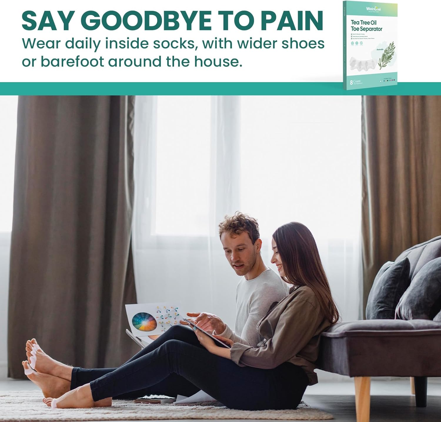Welnove Toe Spacer Bunion Corrector - 8 Pcs Tea Tree Oil Infused Gel Toe Separator to Restore Hammertoes,Bunion Pads for Women Men, Fits for Yoga Practice