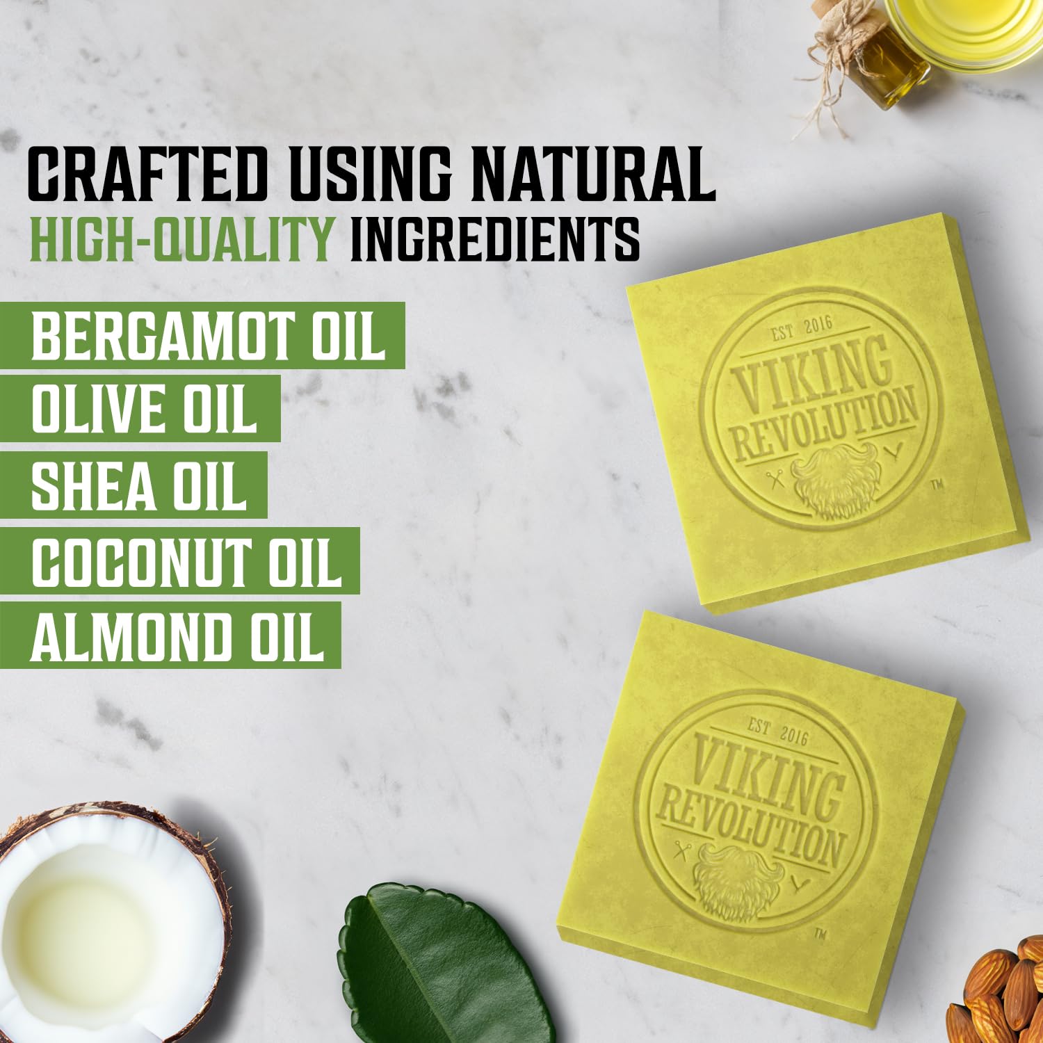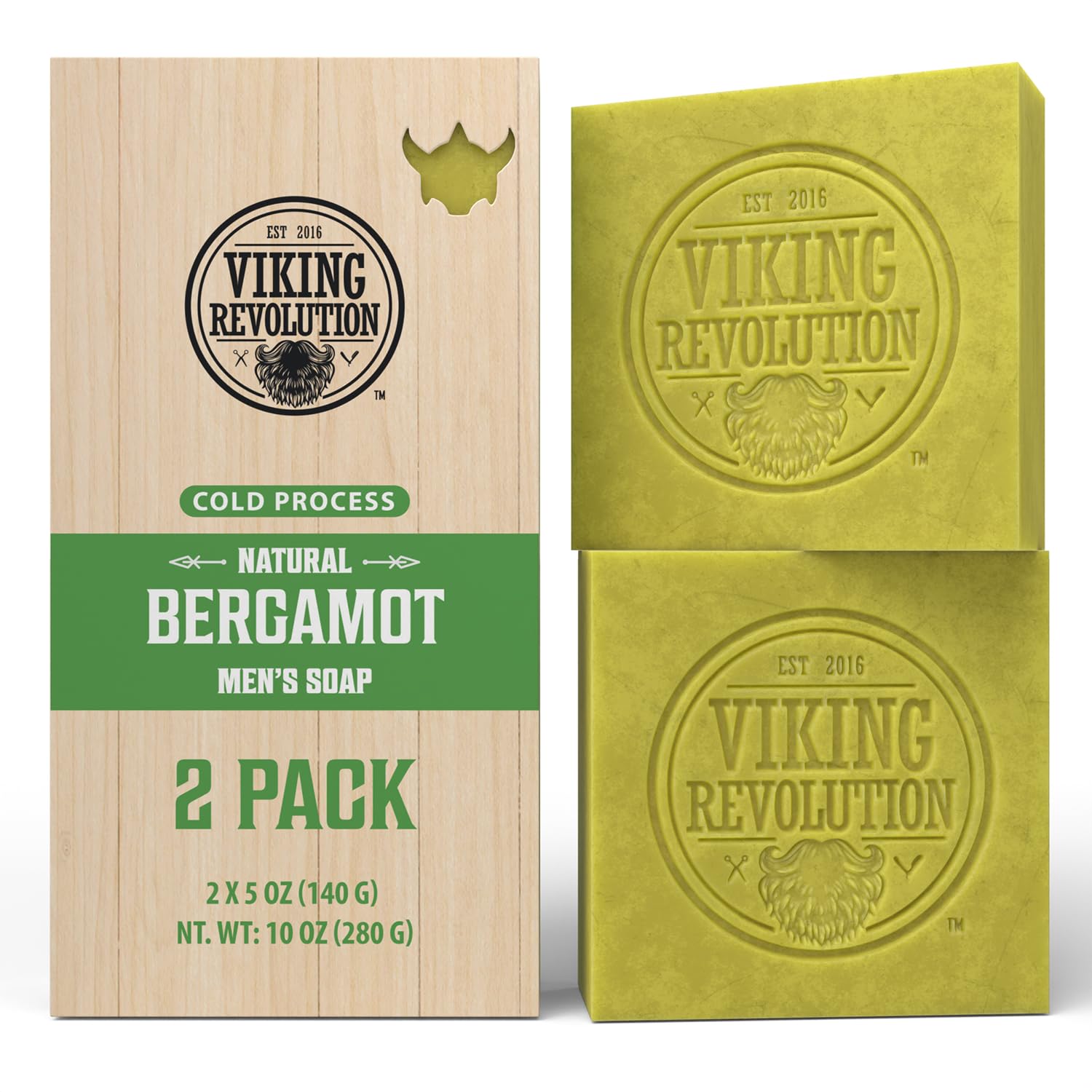 Viking Revolution Bergamot Natural Soap for Men - Mens Soap Bar with Essential Oils Cold Pressed Bar Soap for Men - Nourishing Mens Bar Soap with Coconut Oil, Shea Oil, Almond Oil (2 Pack)