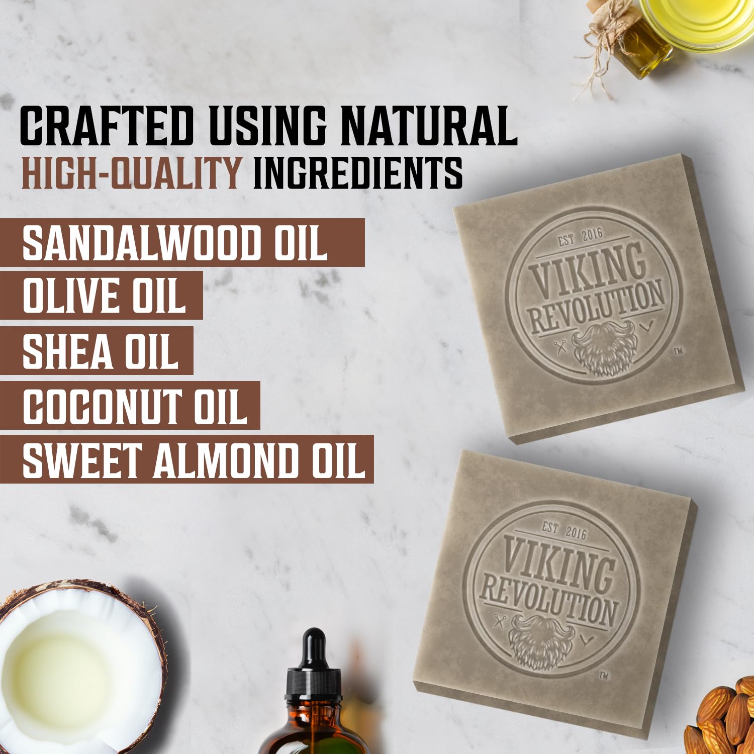 Viking Revolution Sandalwood Natural Soap for Men - Mens Soap Bar with Essential Oils Cold Pressed Bar Soap for Men - Nourishing Mens Bar Soap with Coconut Oil, Shea Oil, Almond Oil (2 Pack)