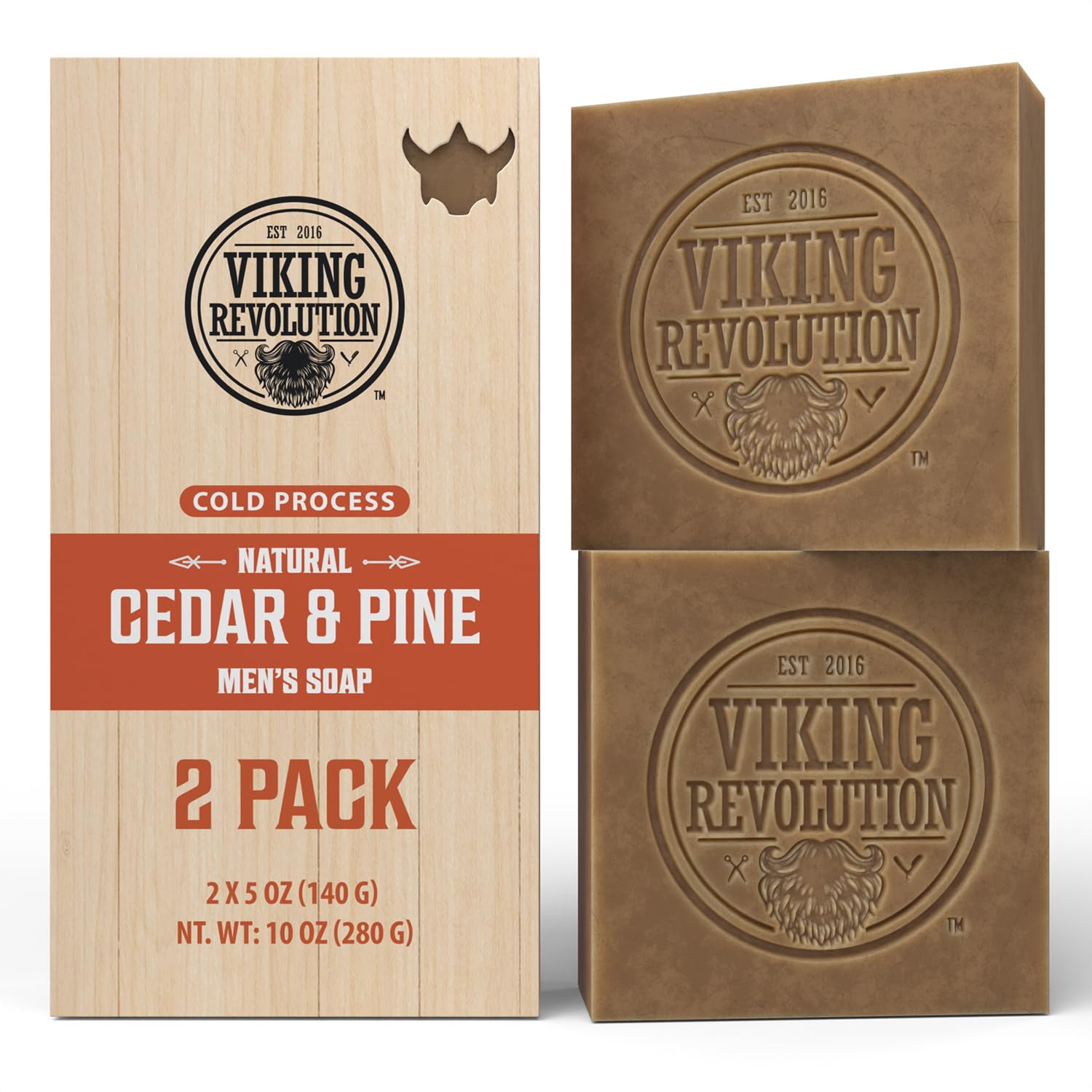 Viking Revolution Cedarwood and Pine Natural Soap for Men - Mens Soap Bar with Essential Oils Cold Pressed Bar Soap for Men - Nourishing Mens Bar Soap with Coconut Oil, Shea Oil, Almond Oil (2 Pack)