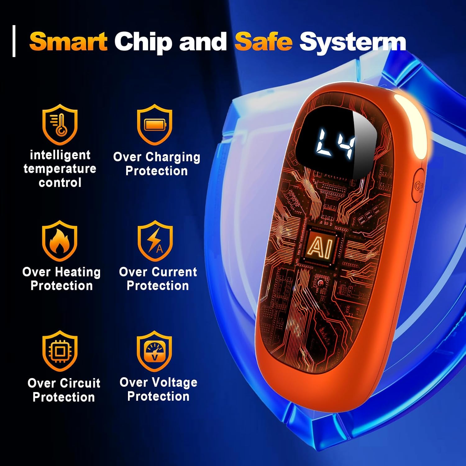 - 【LED Display】Built-in LED digital display, shows the remaining power or the temperature level. L1-L4 is single-sided heating, H1-H4 is dual-sided heating. This electronic hand warmers rechargeable with the ability to see the remaining battery power, you can plan ahead and make sure you're never without warmth when you need it.