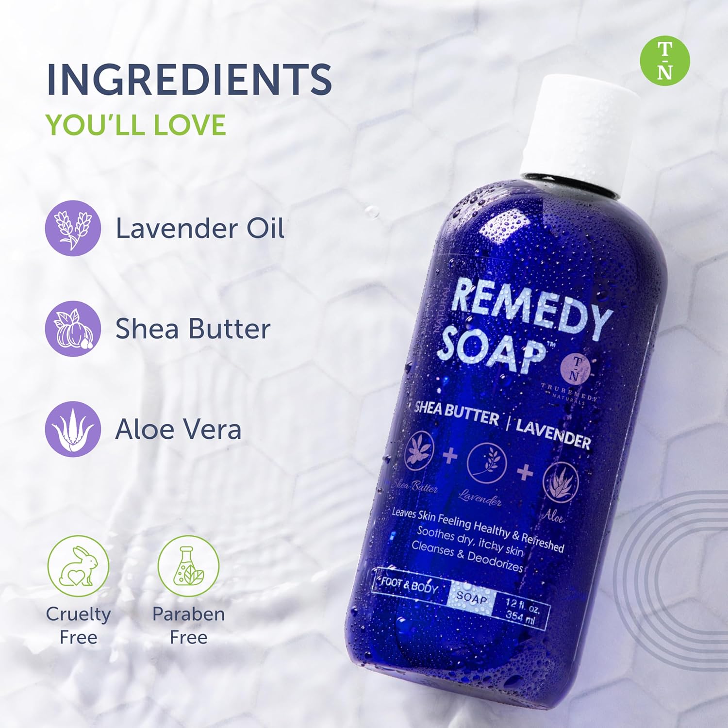 Truremedy Naturals Lavender Shea Butter Body Wash for Women - Aloe Lavender Body Wash with Shea Butter - Soothing Soap for Dry Skin - Hydrating Natural with Essential Oils - 12oz