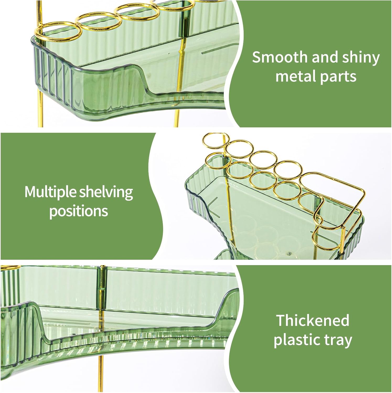 - 【Decorative Perfume Organizer】Golden rod and green trays will definitely catch your eyes at a glance. Get this beautiful display shelf for your beloved perfumes, skincares, and cosmetics